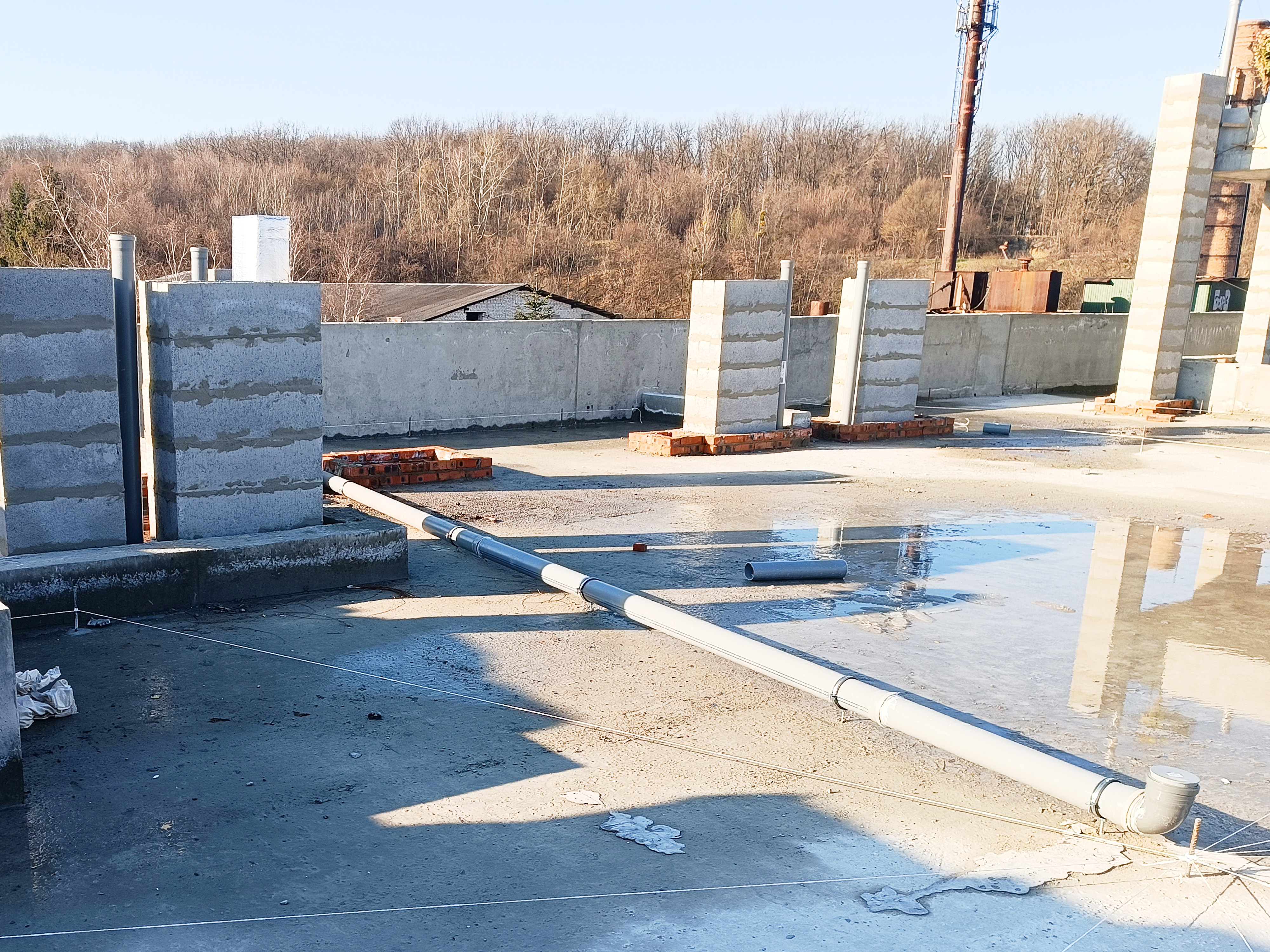 - Встановлено рівні для укладання стяжки на даху, що дозволить продовжити роботи з покрівлею.