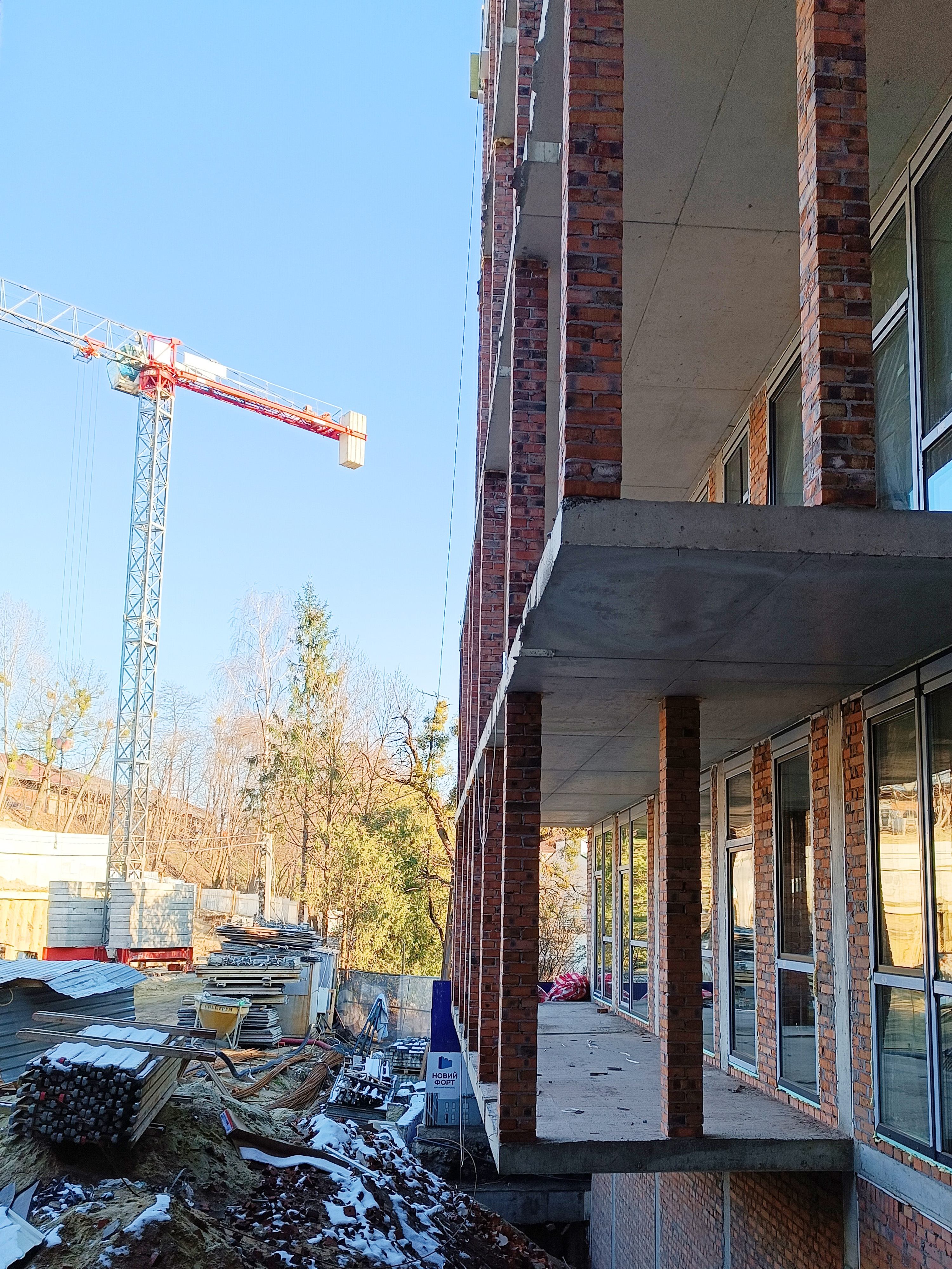 - На 4-му поверсі продовжуються роботи з штукатурення, що наближає завершення внутрішніх оздоблювальних робіт.