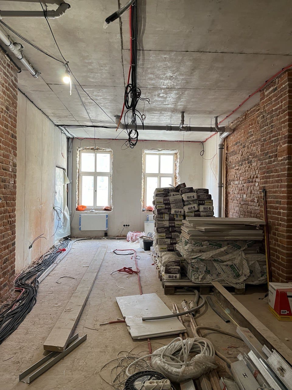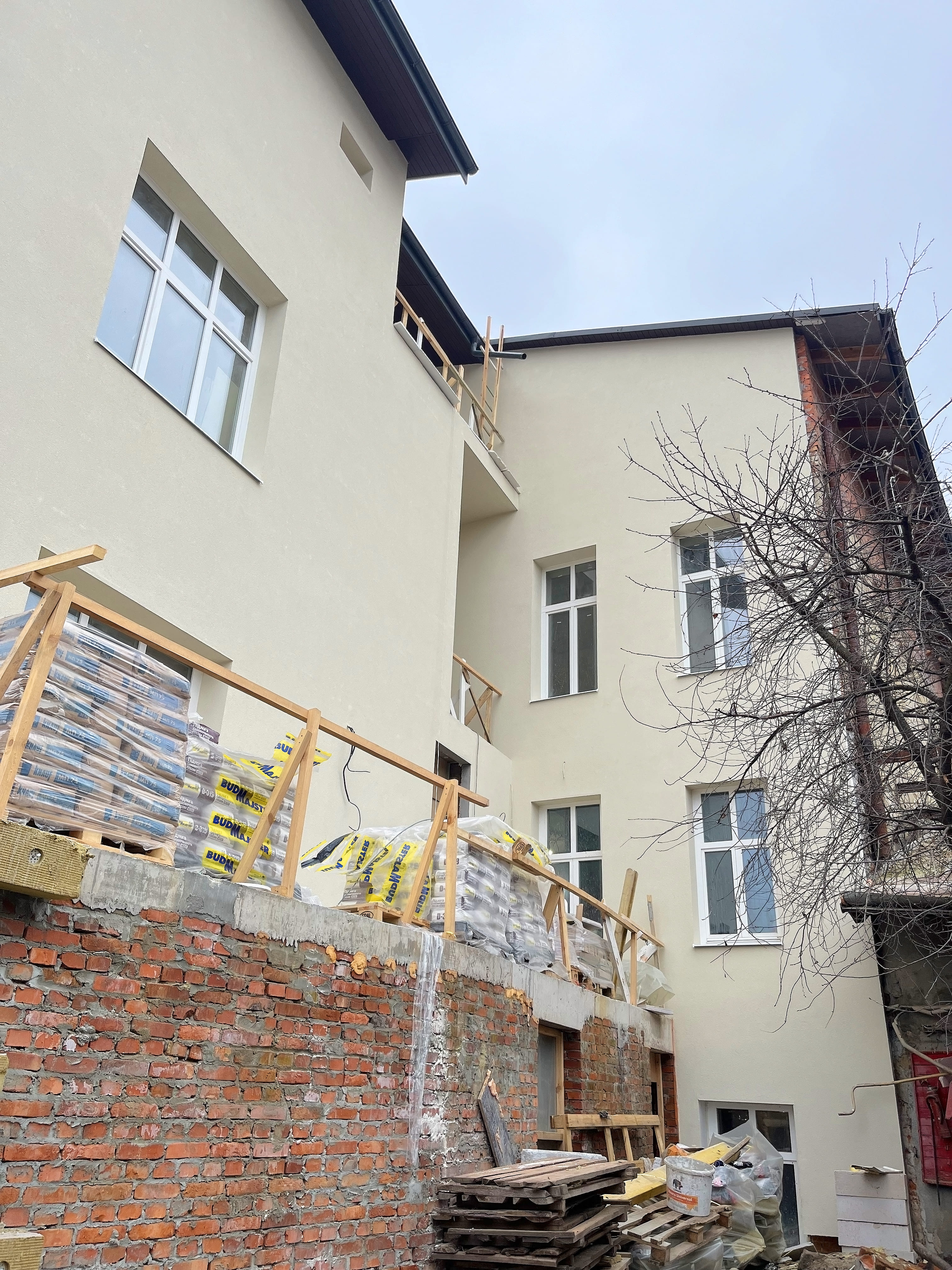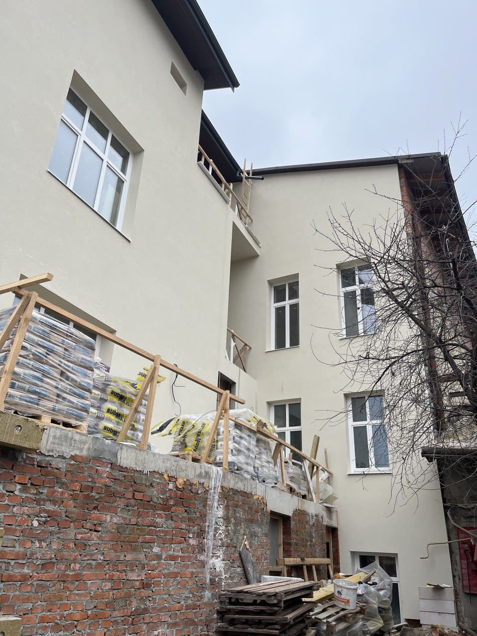 Throughout 2024, significant reconstruction work has been carried out on the building. The main structural work has been completed, including roof repairs, as the previous covering was improperly installed, leading to leakage issues. The roof has been fully restored using modern materials that ensure reliability and durability.