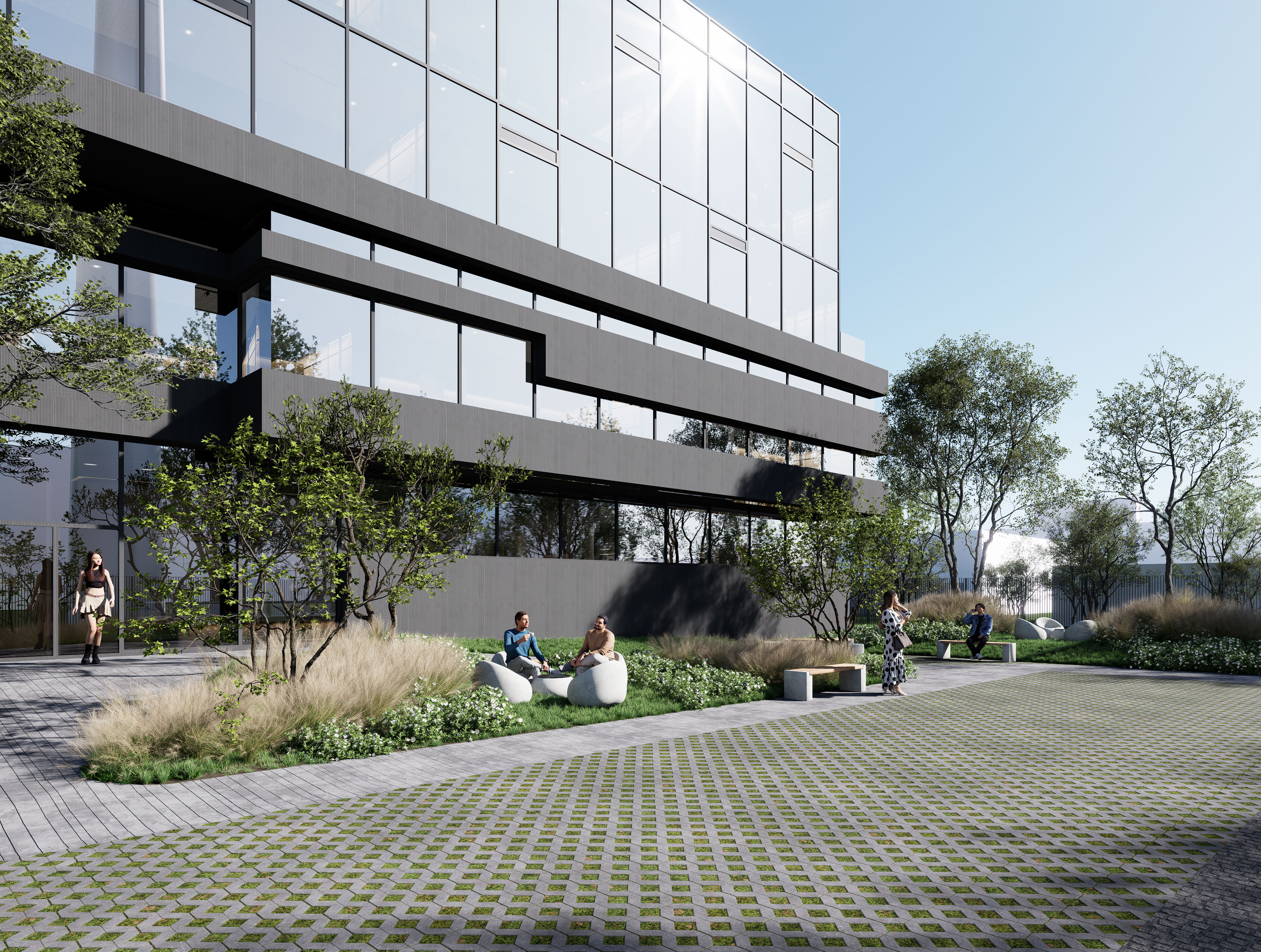 In terms of scale and morphology, the building integrates harmoniously into the context of the existing industrial zone, while at the same time establishing a new architectural landmark for the surrounding environment. Green recreational areas with places for employees to rest are arranged around the building. Well-organized landscaping and contemporary landscape solutions create a balance between the industrial-administrative function of the facility and a comfortable, human-centered environment.