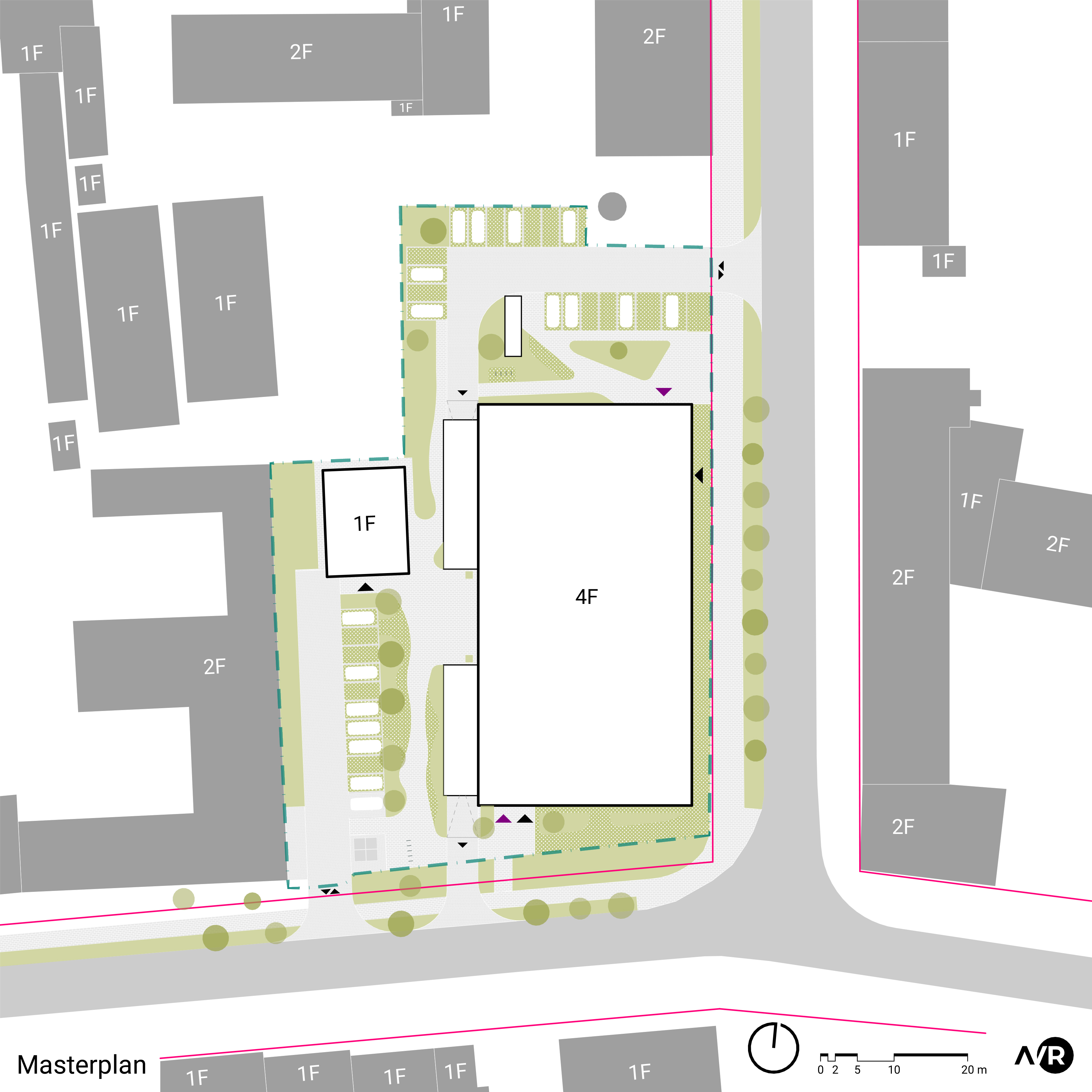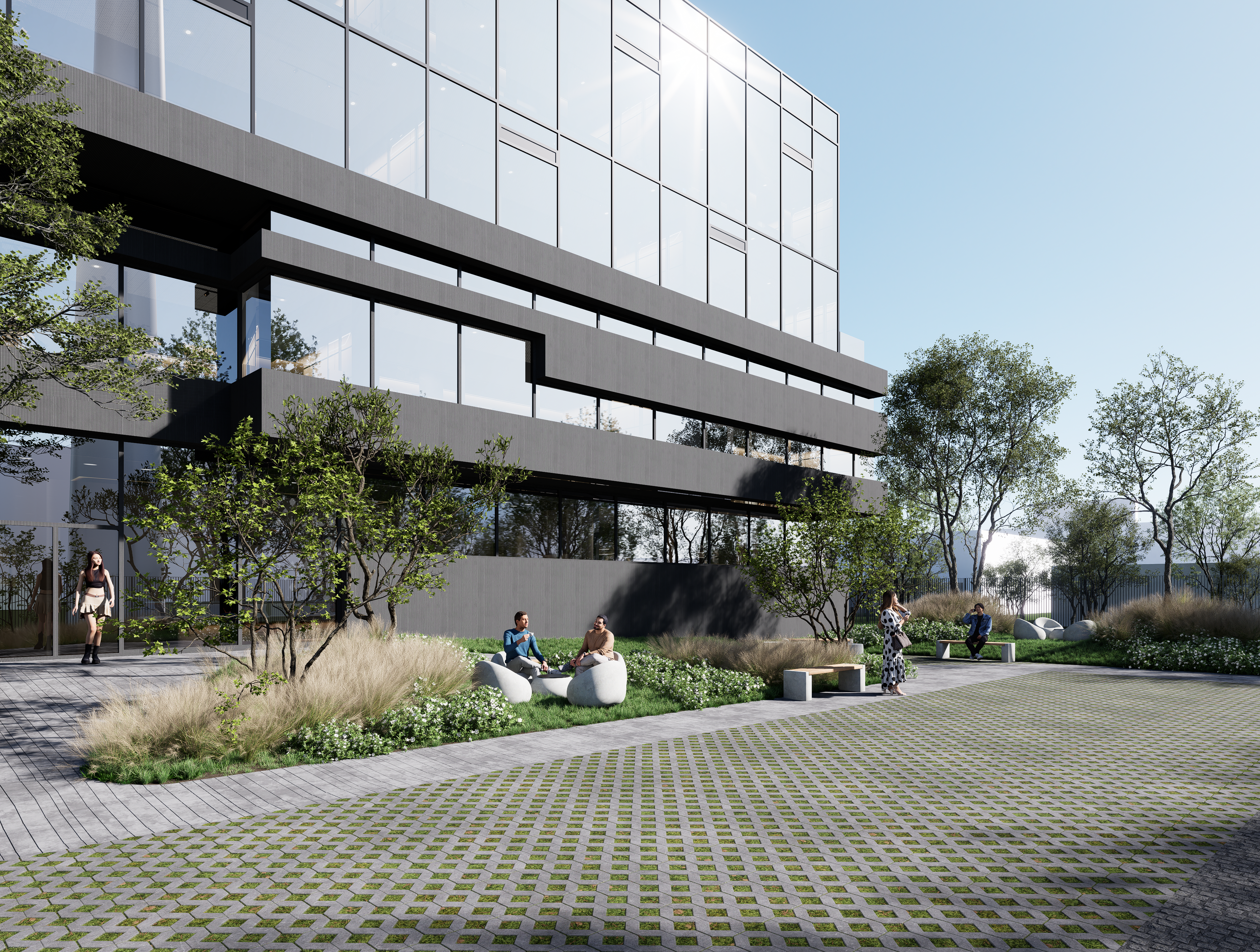 За масштабом та морфологією будівля гармонійно вписується у контекст існуючої промислової зони, водночас створюючи новий архітектурний орієнтир для навколишнього середовища. Довкола будівлі сформовані озеленені рекреаційні зони з місцями для відпочинку працівників. Впорядкований благоустрій і сучасні ландшафтні рішення створюють баланс між індустріально-адміністративною функцією об’єкта та комфортним середовищем гуманним середовищем.