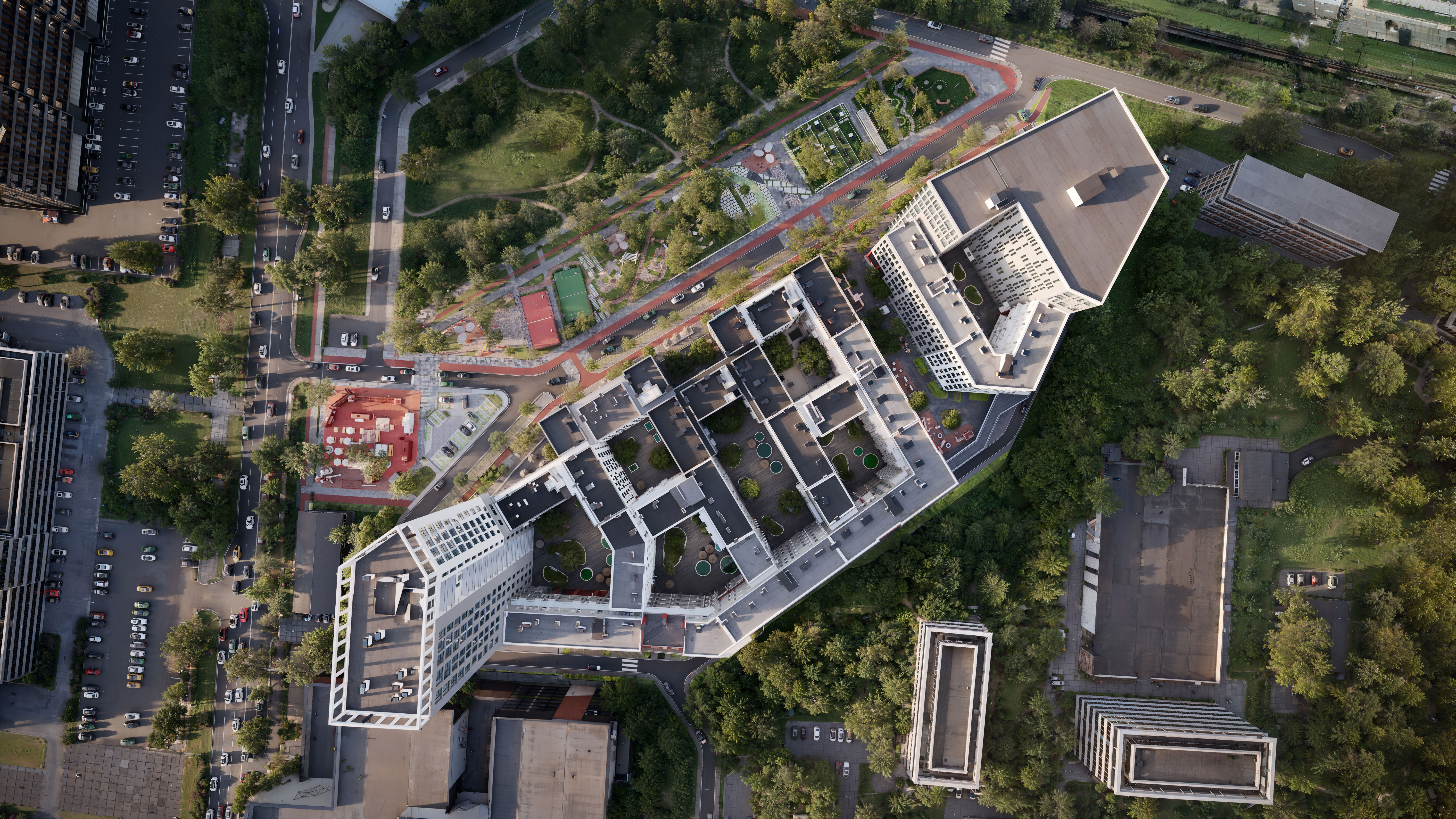 The ground floor of the complex is dedicated to commercial spaces — shops, cafés, services, and everyday amenities that create a lively and dynamic atmosphere. Here, residents enjoy not only comfortable housing but also a complete environment where they can meet friends, spend time with family, or simply enjoy the rhythm of urban life.