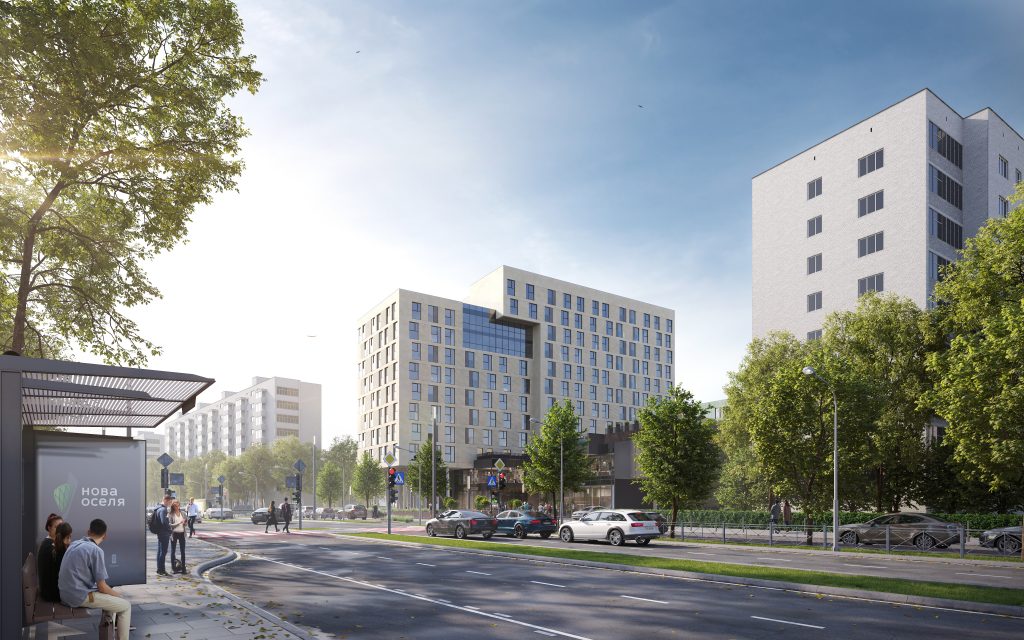 Ця багатофункціональна споруда запроектована з урахуванням потреб майбутніх мешканців і відвідувачів комерційних приміщень.