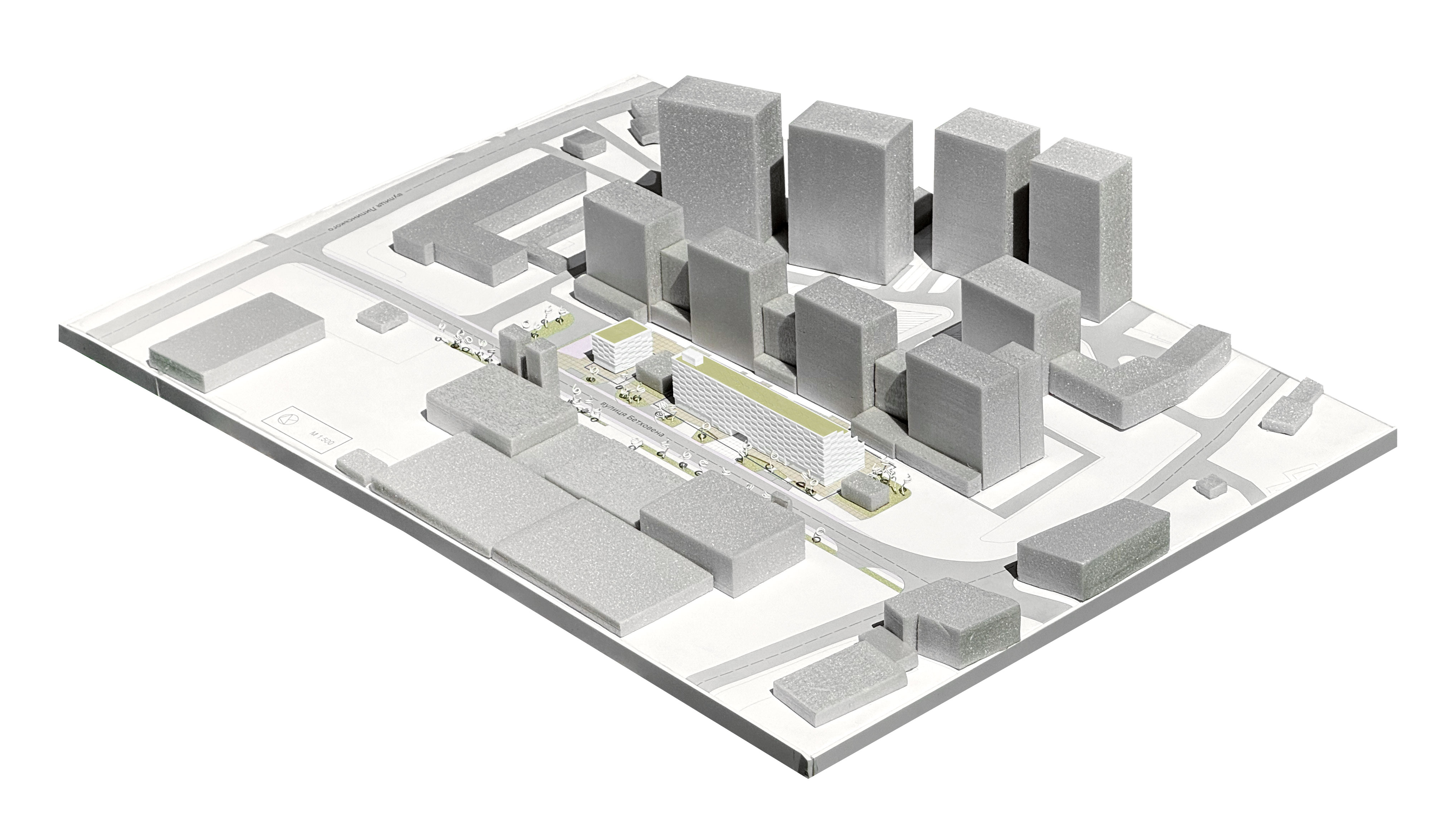 Проєкт офісного центру передбачається у мікрорайоні, що активно трансформується з промислового осередку в комфортний міський ландшафт. Місією цього проєкту є формування більш збалансованого середовища, яке забезпечує сучасну робочу атмосферу та високу якість міського життя. Завдяки продуманому ланцюгу публічних просторів і входів, офісний центр сприяє соціальній взаємодії. Його стримана архітектура з цілісним фасадним рішенням служить естетичним фоном, здатним відсіяти хаотичність виробничих будівель. А пішоходизований благоустрій навколо із зеленою інфраструктурою доповнює концепт, спрямований на комфортні щоденні взаємодії.