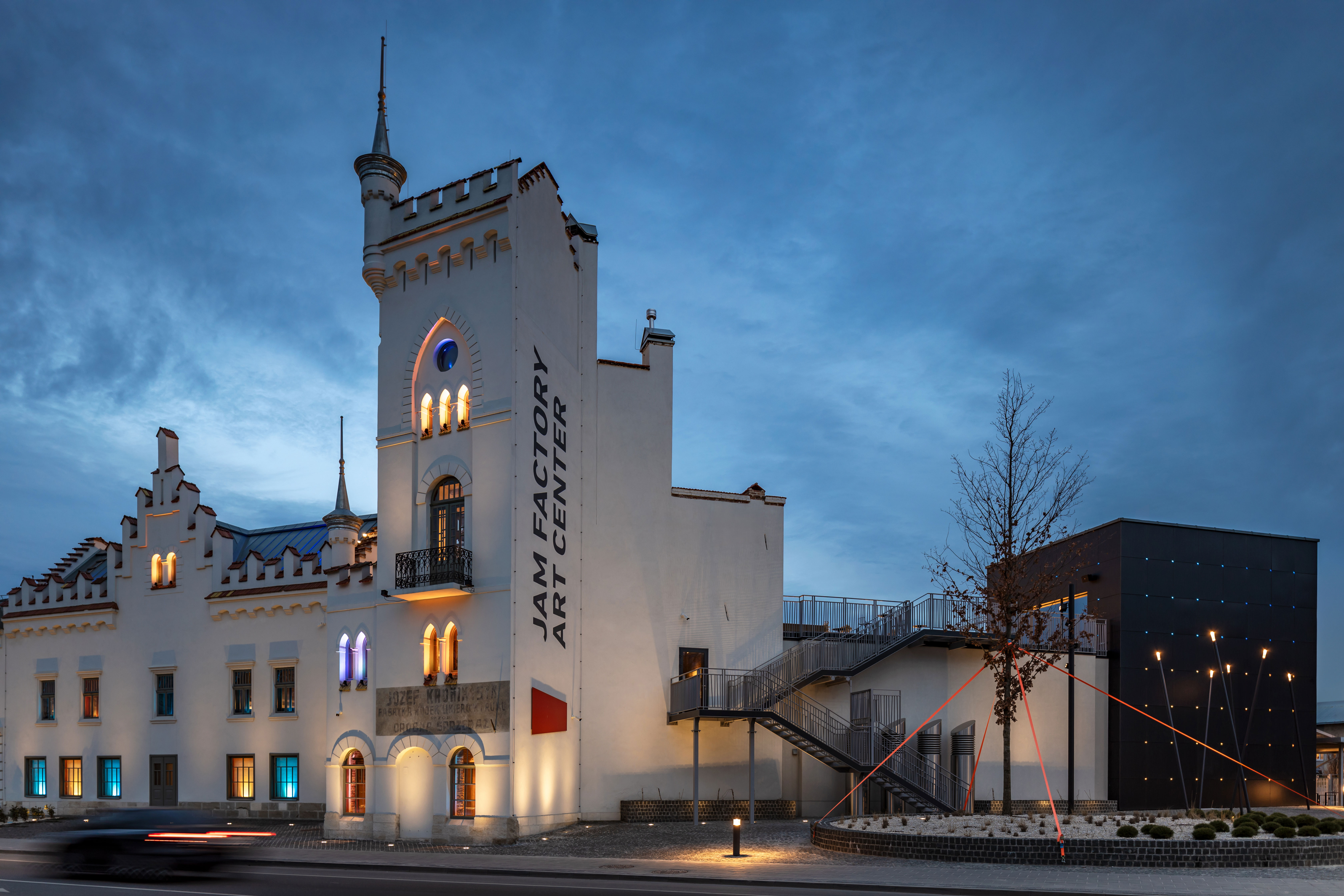 The total area of the Jam Factory Art Center is about 3,090 m². It features five exhibition halls, a summer concert venue, workshop spaces, an interactive zone, and a walking area. The center is located in Pidzamche, a former industrial hub that declined after the factory closures of the 1990s. The art center aims to spark new life in the district and attract residents from across Lviv.