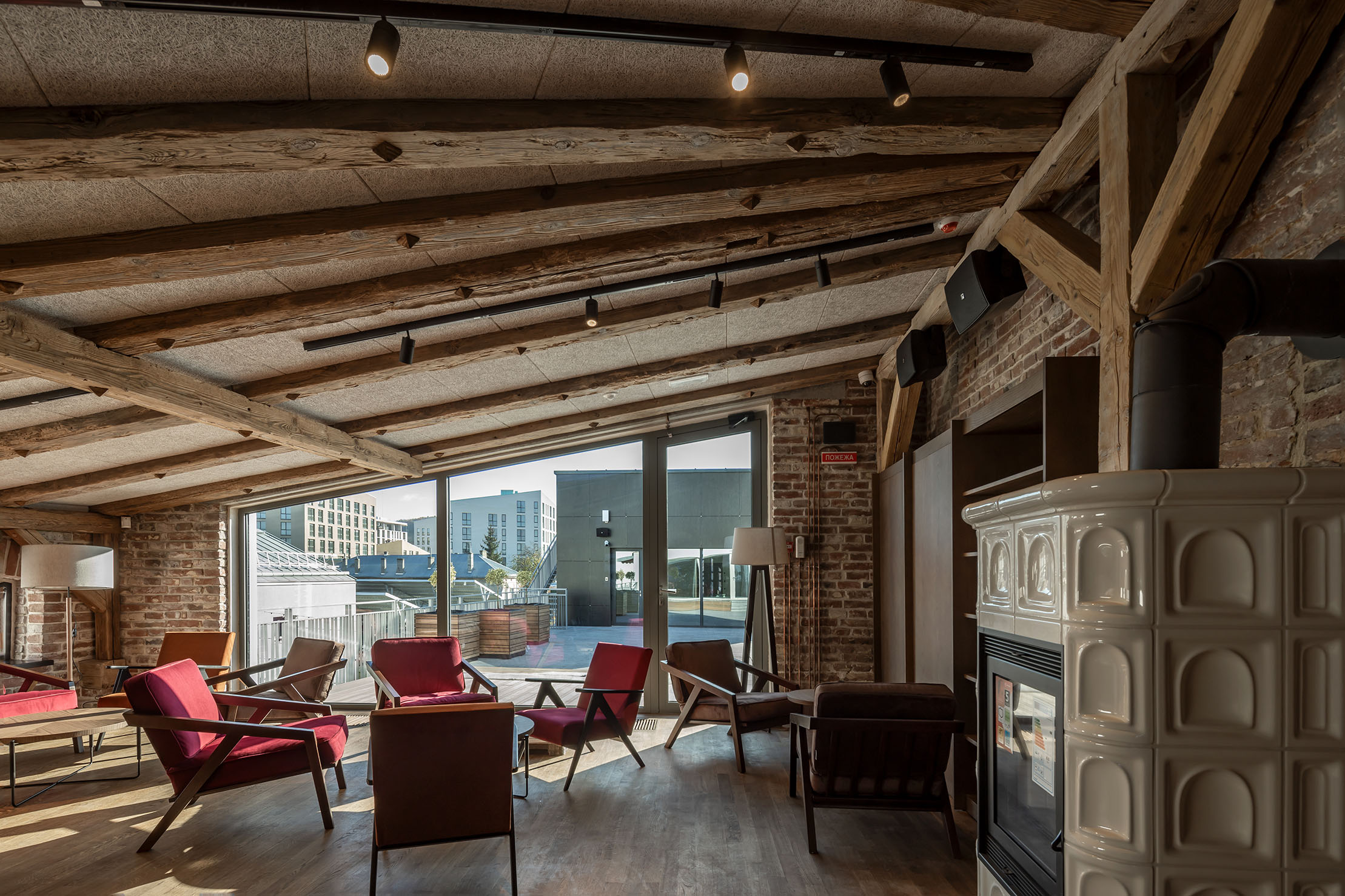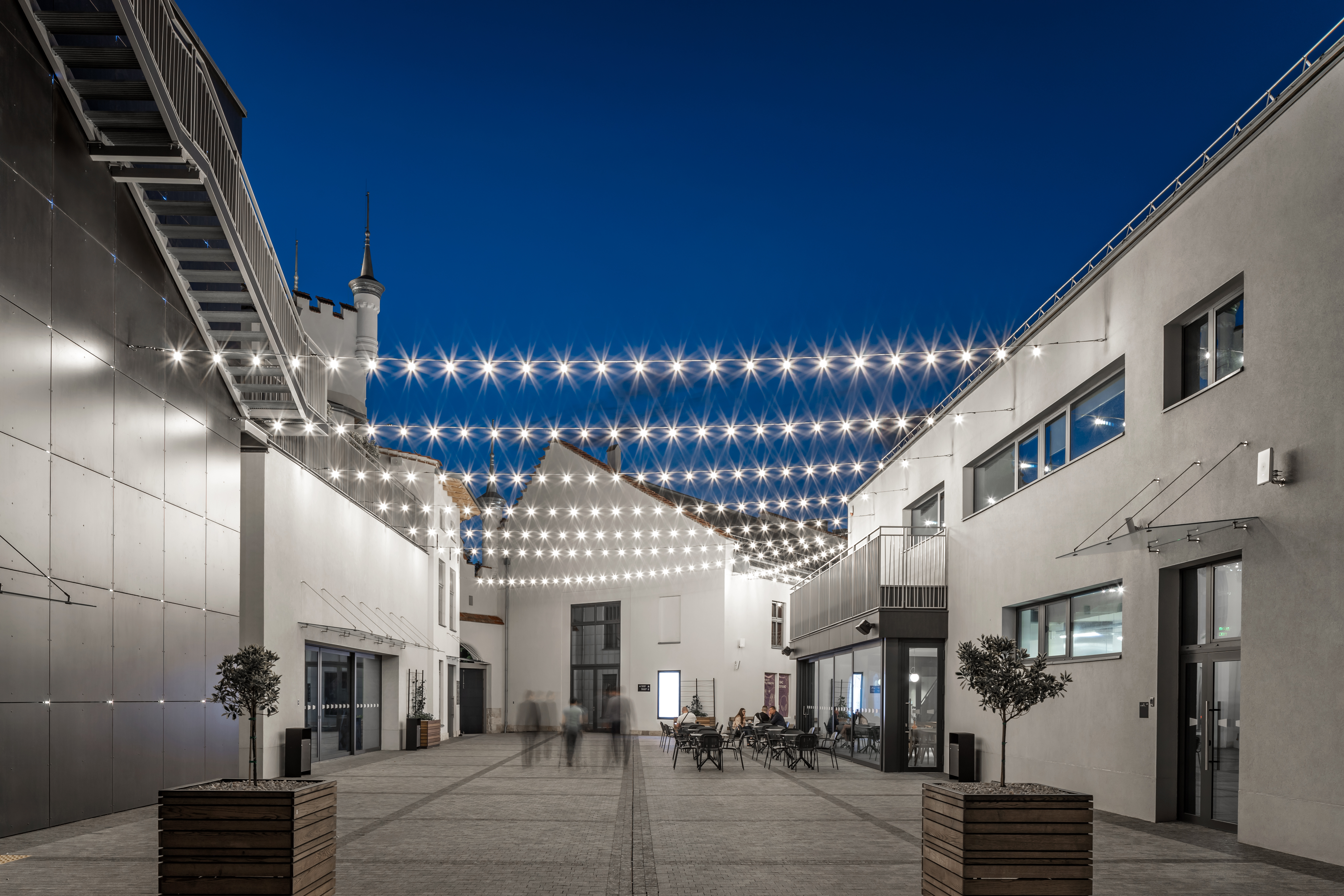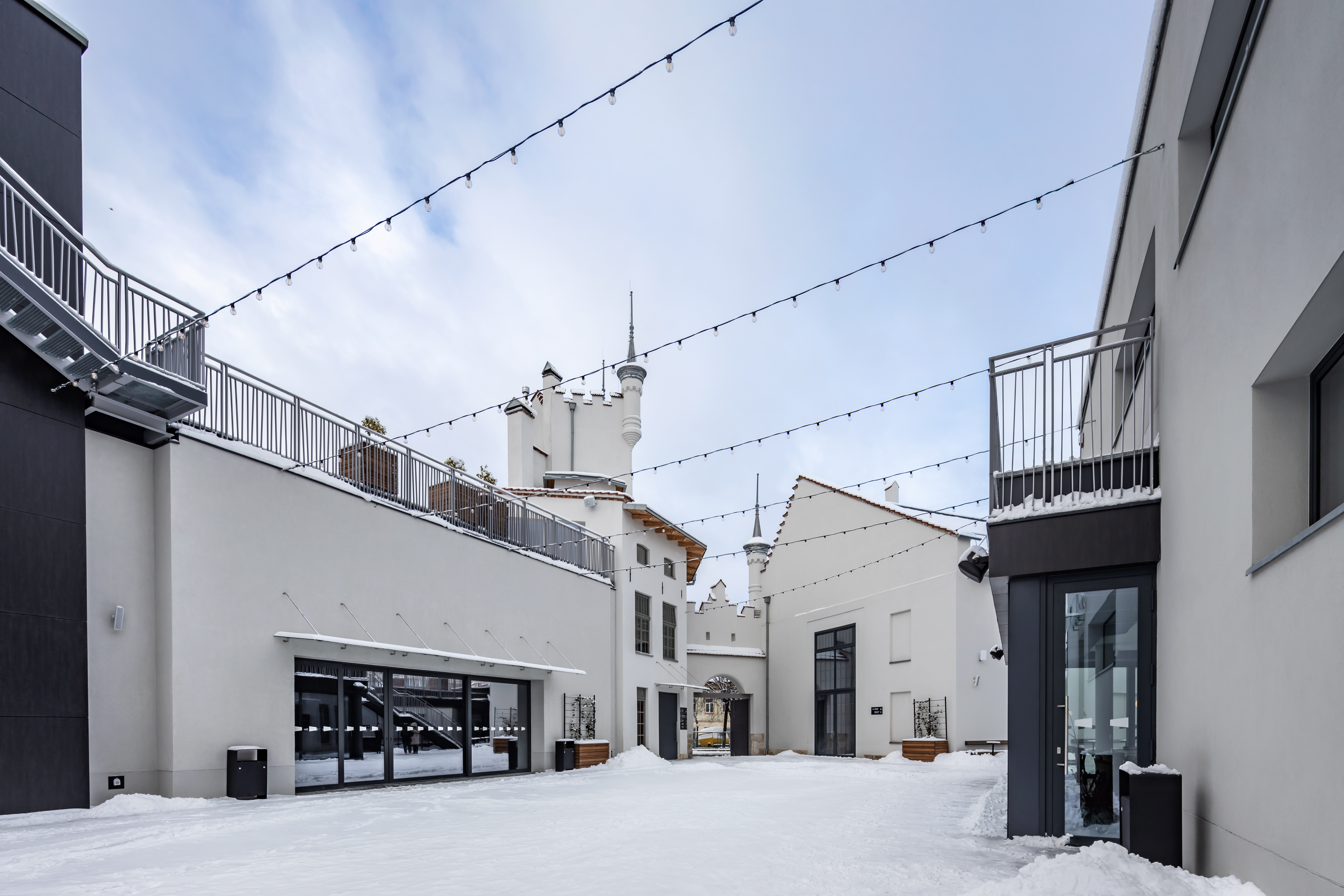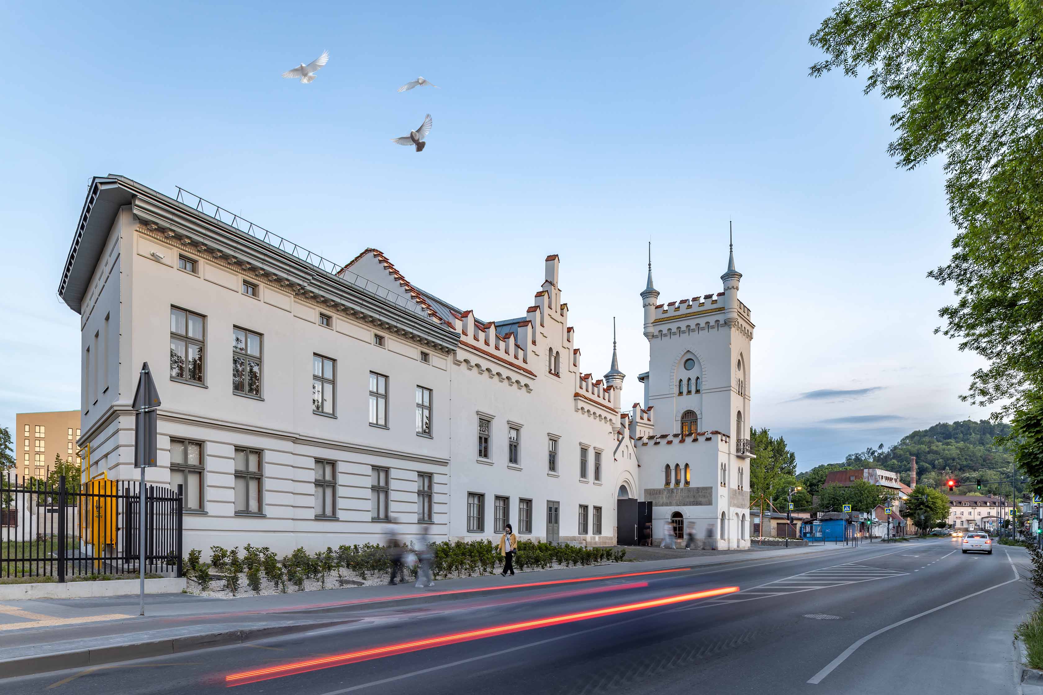 Складова структура колишньої лікеро-горілчаної фабрики «Йозеф Кронік і син» зберігається, а різноманітні елементи пристосовані до потреб мистецького центру. Неоготична вежа, побудована приблизно в 1910 році, ймовірно, була приватним житлом, а тепер у ній облаштували зони відпочинку, невелику виставка та магазин. Колишні виробничі та адміністративні приміщення перетворені на зони, присвячені мистецтву (виставки, театр, музика), адмініструванню та споживанню (кафе-ресторан).