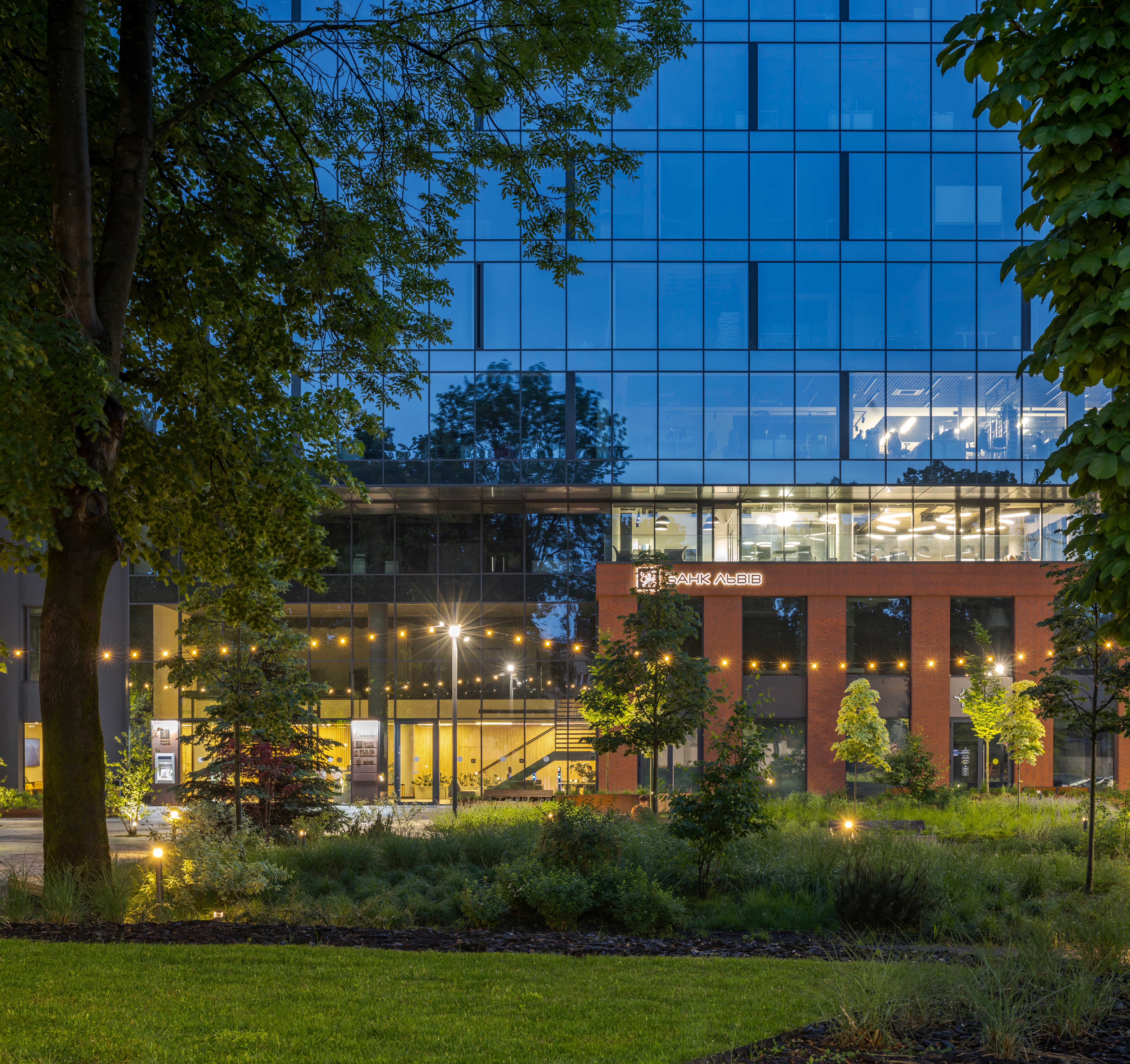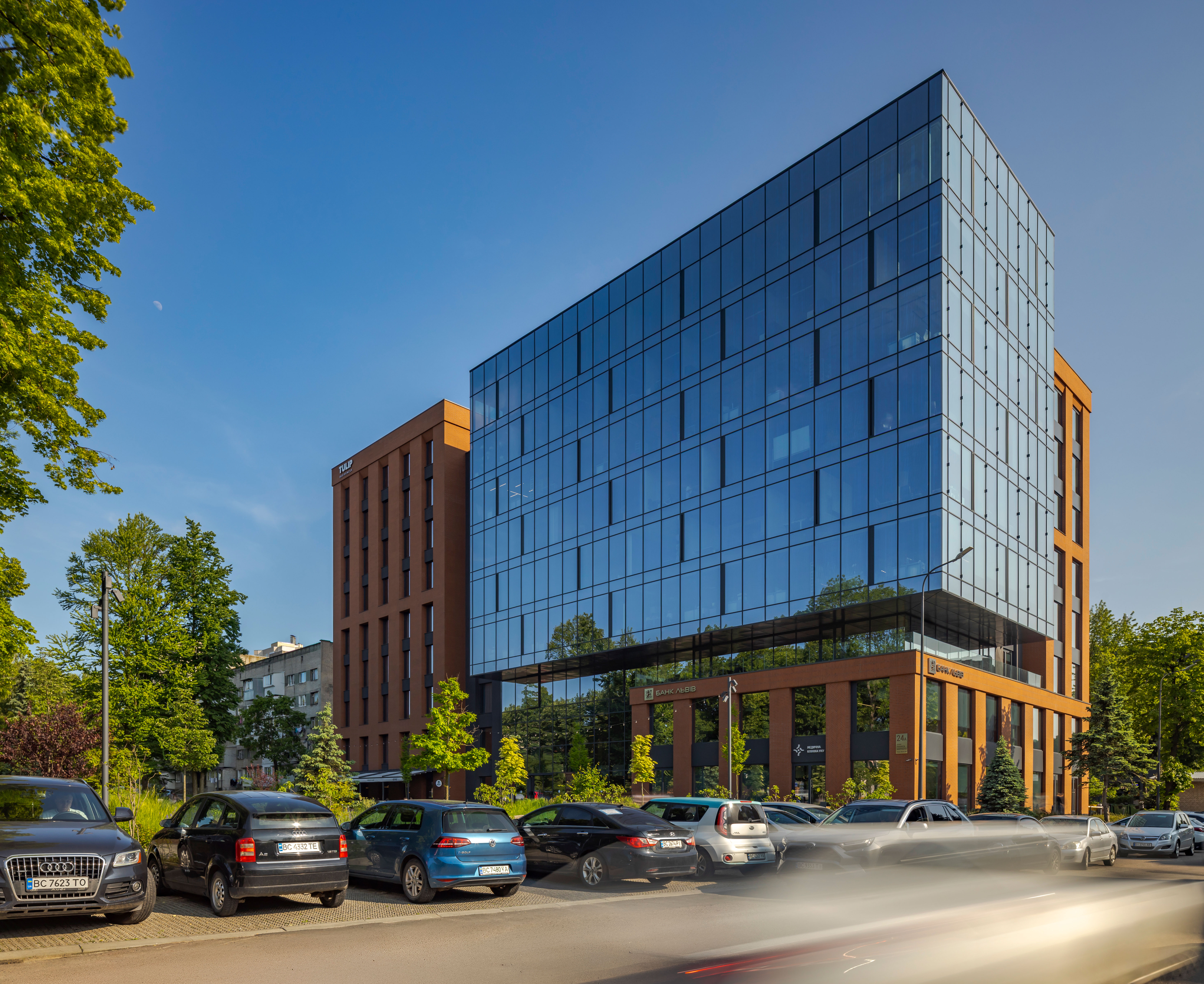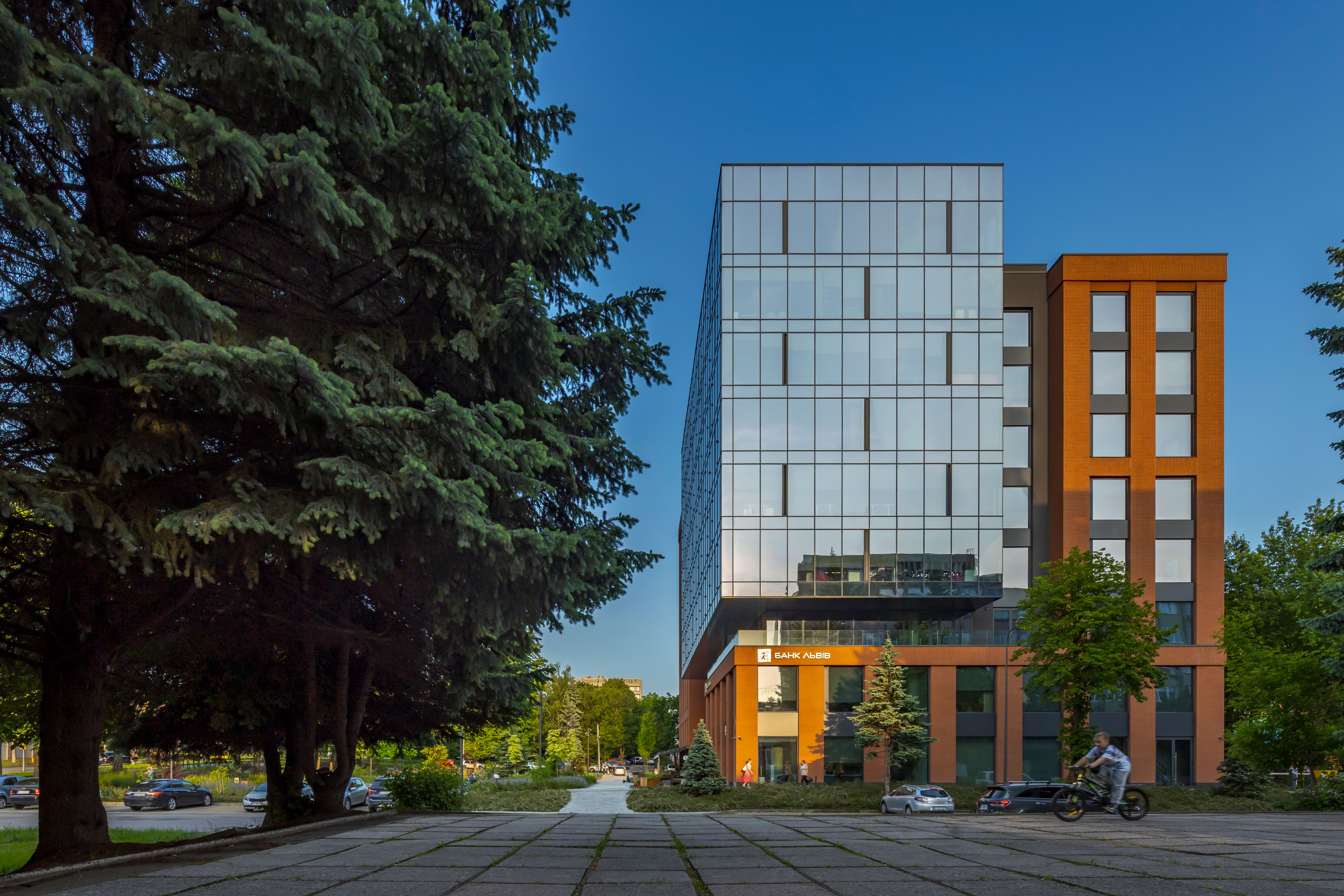 Будівля бізнес-центру стала естетичним і функціональним продовженням міського ландшафту. Ззовні вона гармонійно вписана у навколишнє середовище, а всередині створює комфортне, оптимізоване робоче середовище для співробітників.