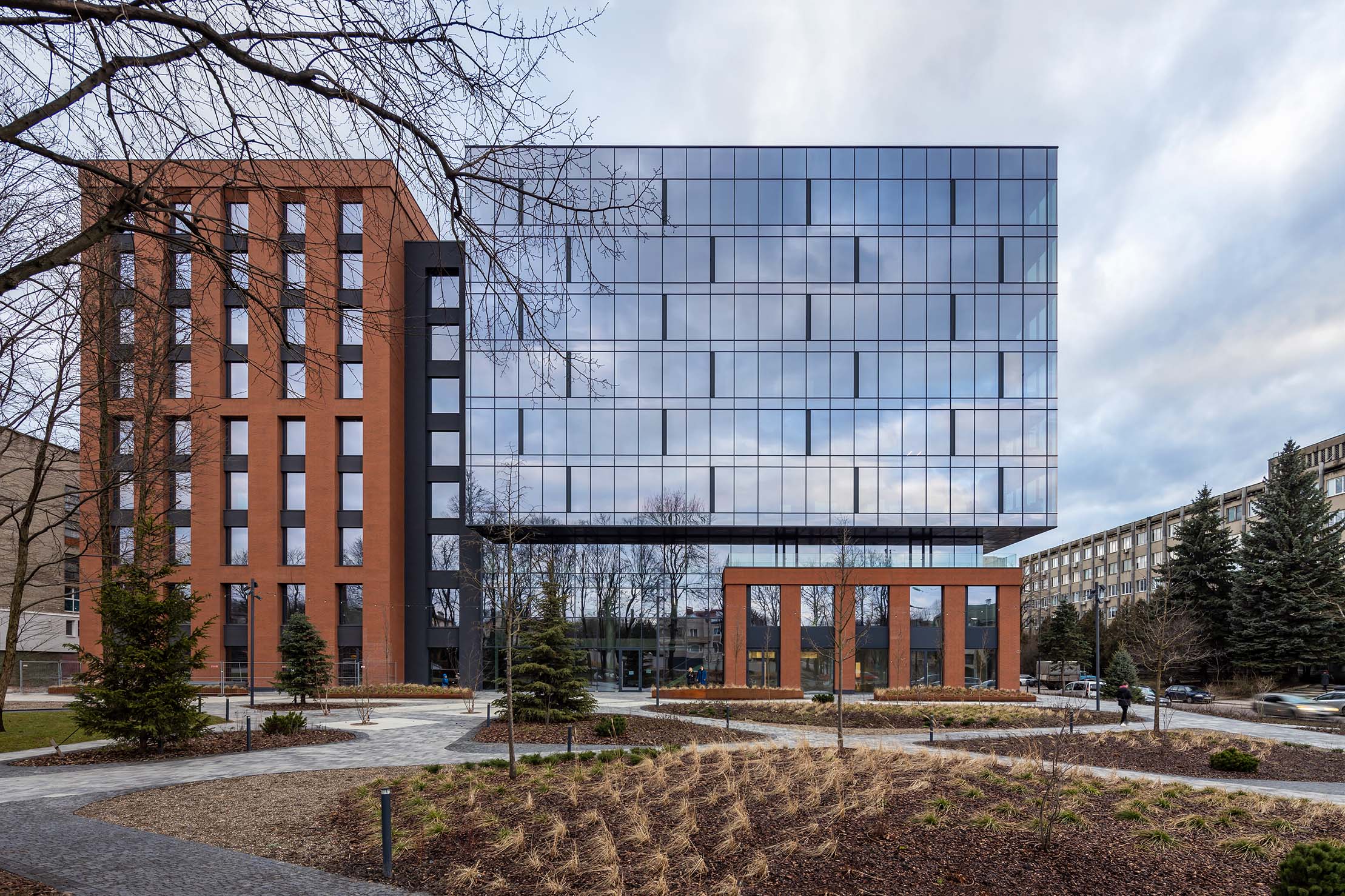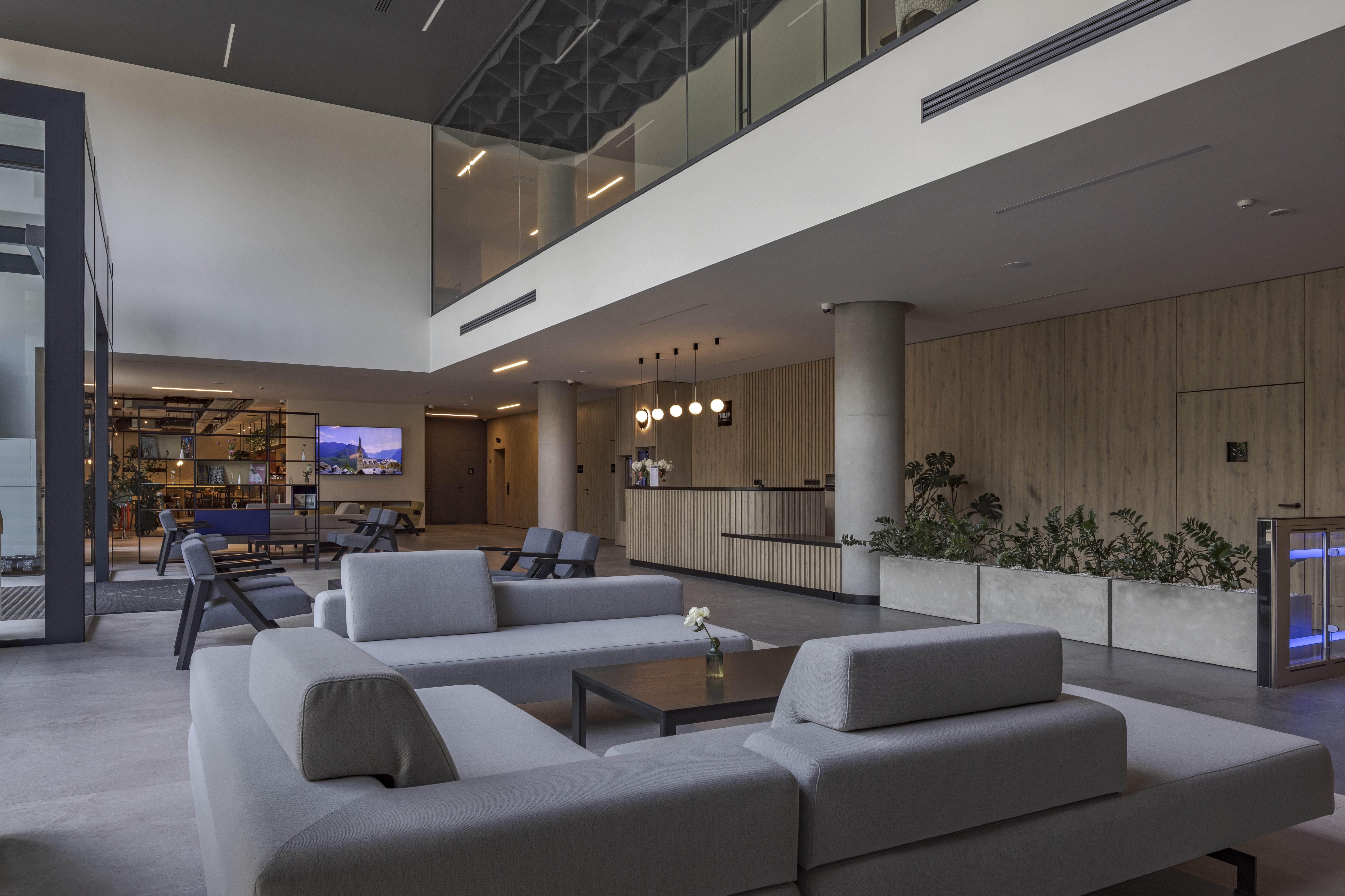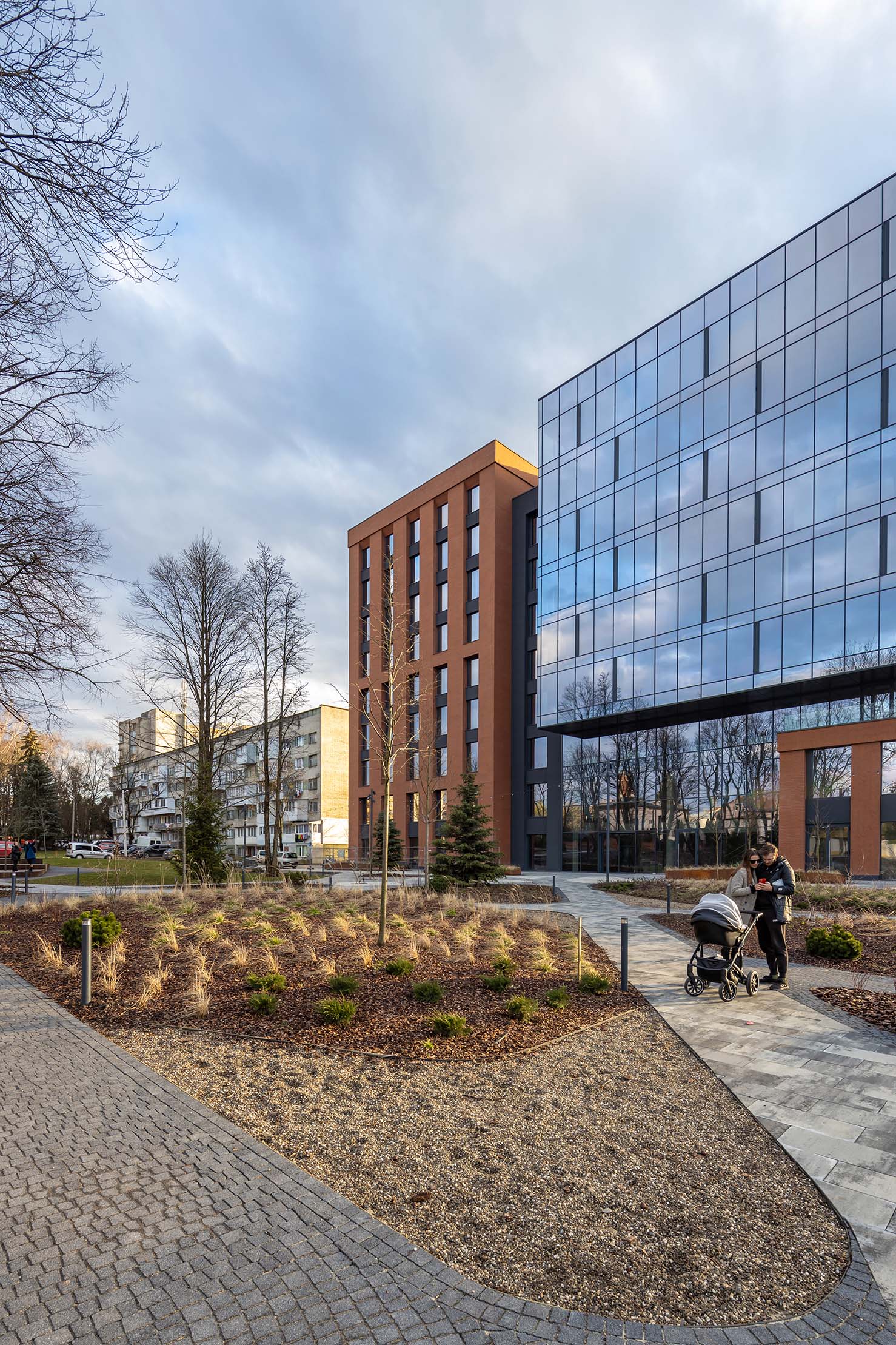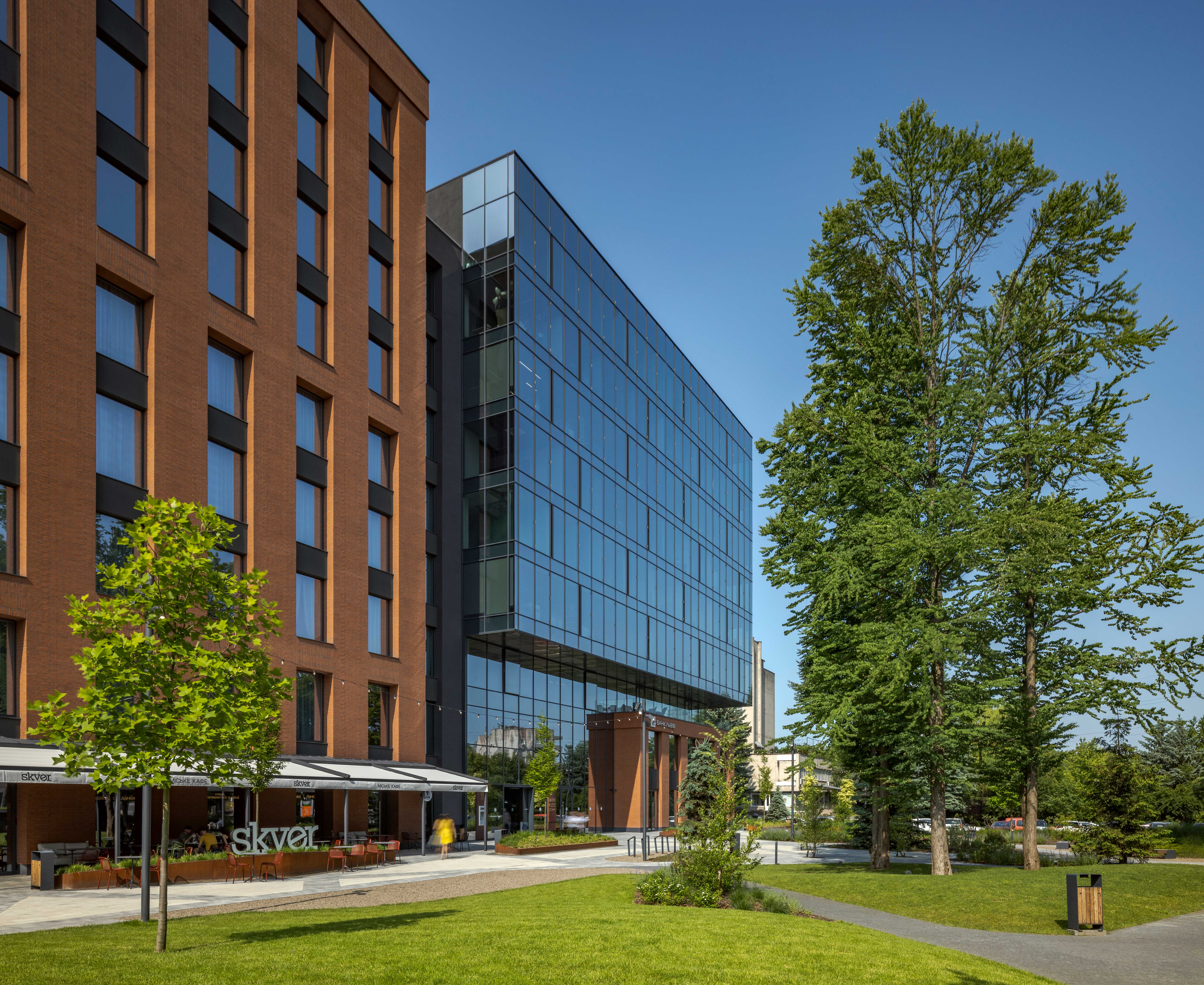 Будівля бізнес-центру стала естетичним і функціональним продовженням міського ландшафту. Ззовні вона гармонійно вписана у навколишнє середовище, а всередині створює комфортне, оптимізоване робоче середовище для співробітників.