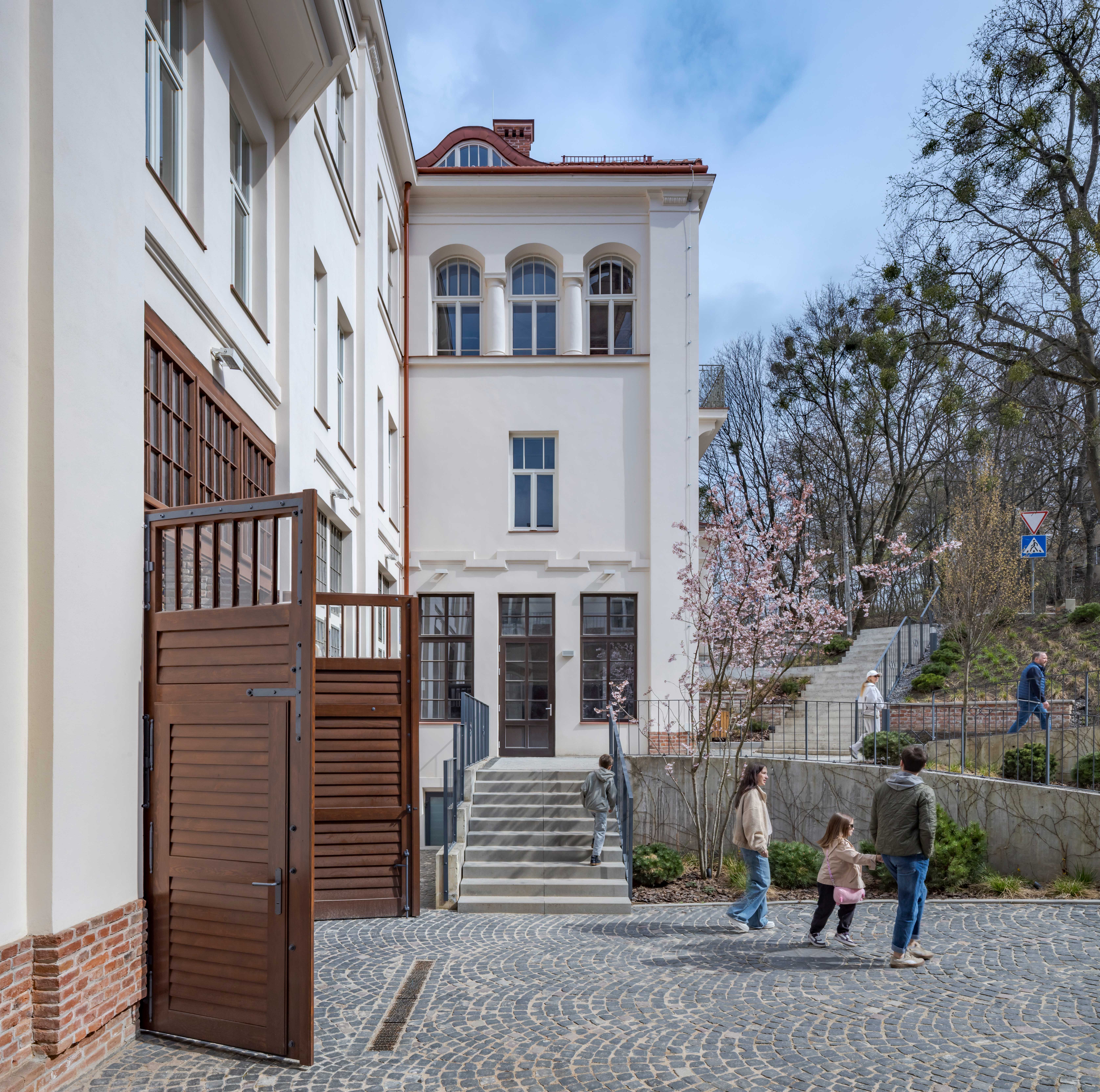 - Громадський простір: відкритий двір між будівлями та сквер слугує місцем для відпочинку та проведення заходів. Нова пішохідна вуличка через колись закриту територію створює нові піші шляхи міста.