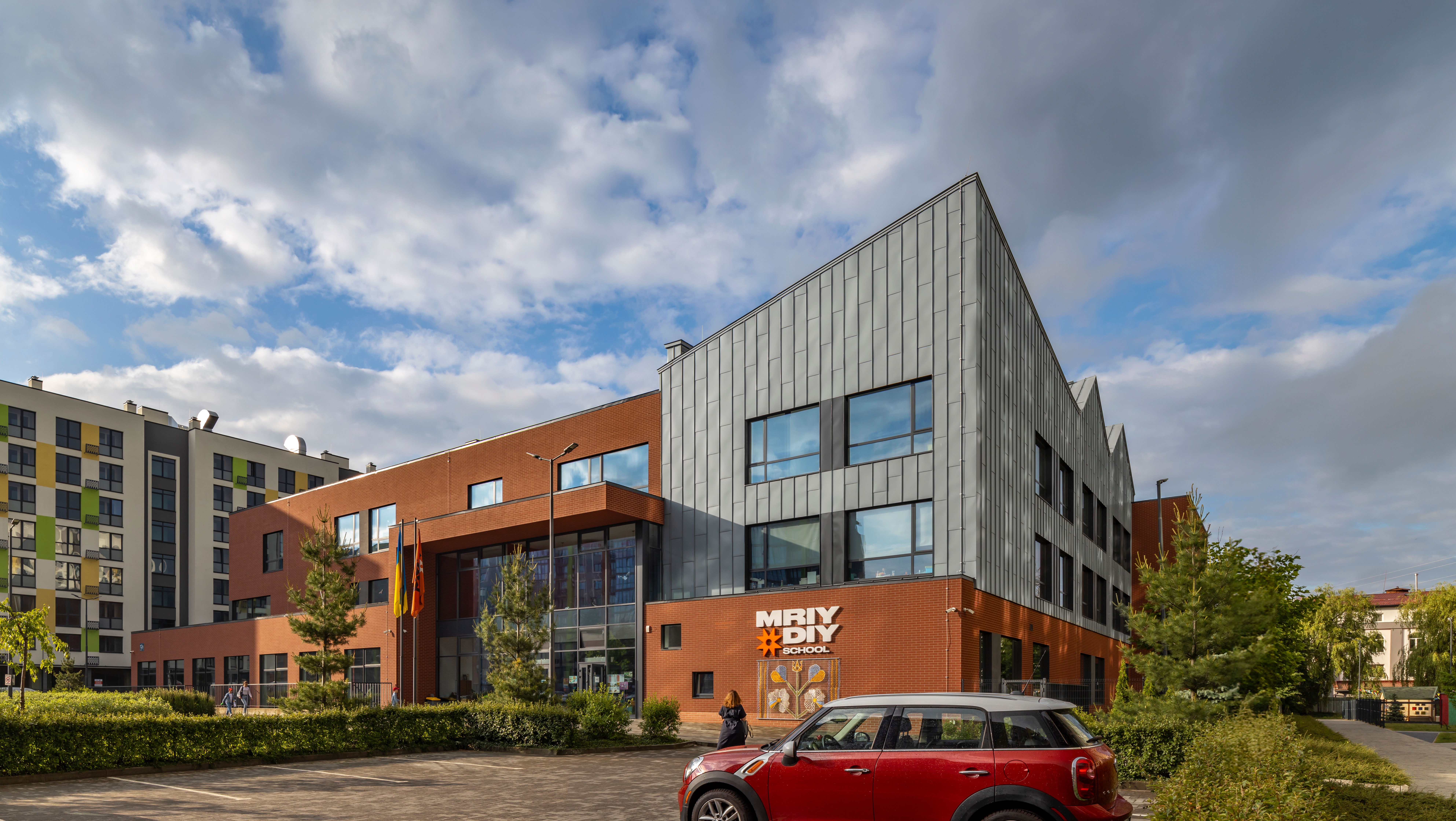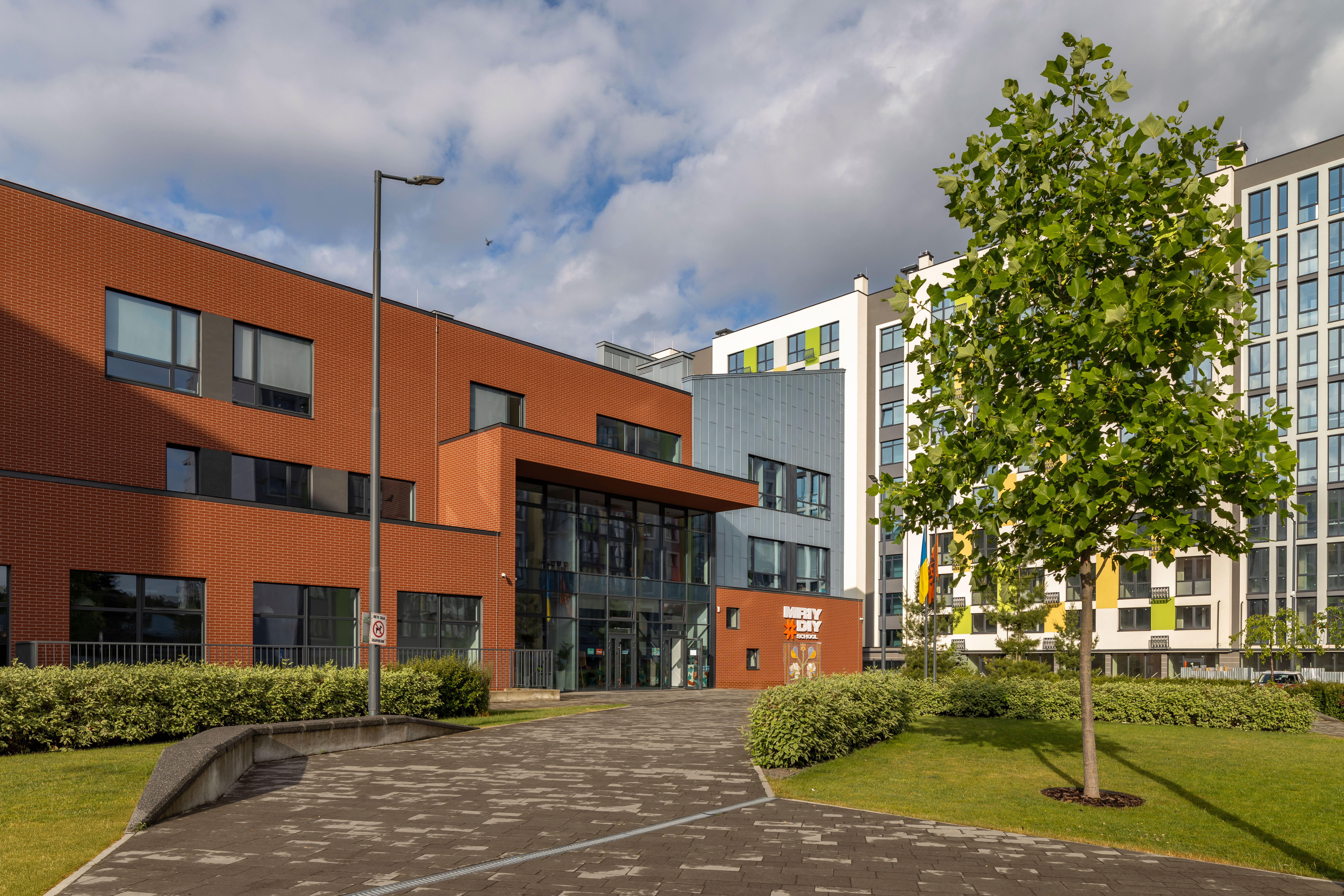 The “MriyDiy” School is located in a new micro-district developed on the site of the former “Polyaron” plant, which had long ceased its operation. This area had been neglected for a considerable time and required revitalization.