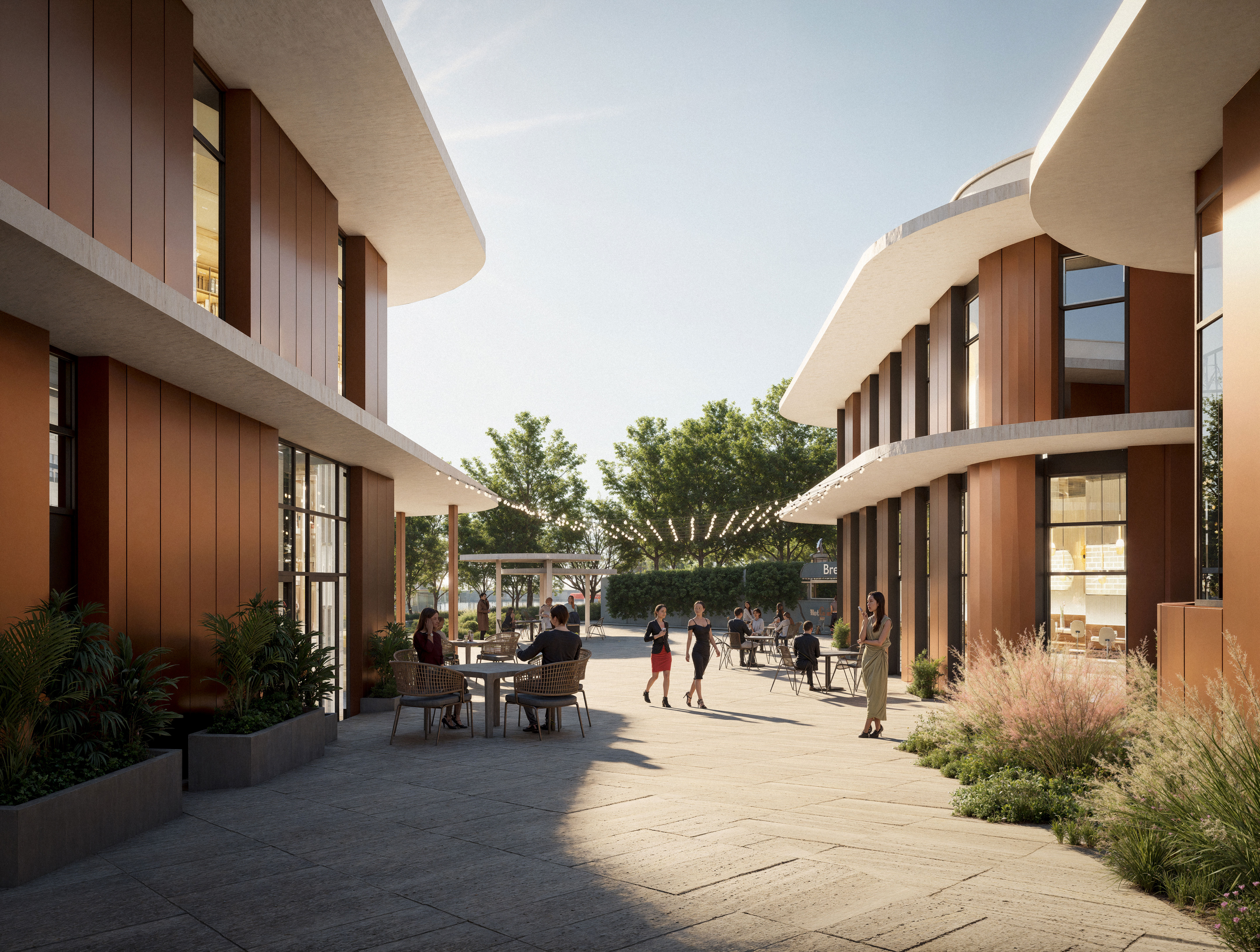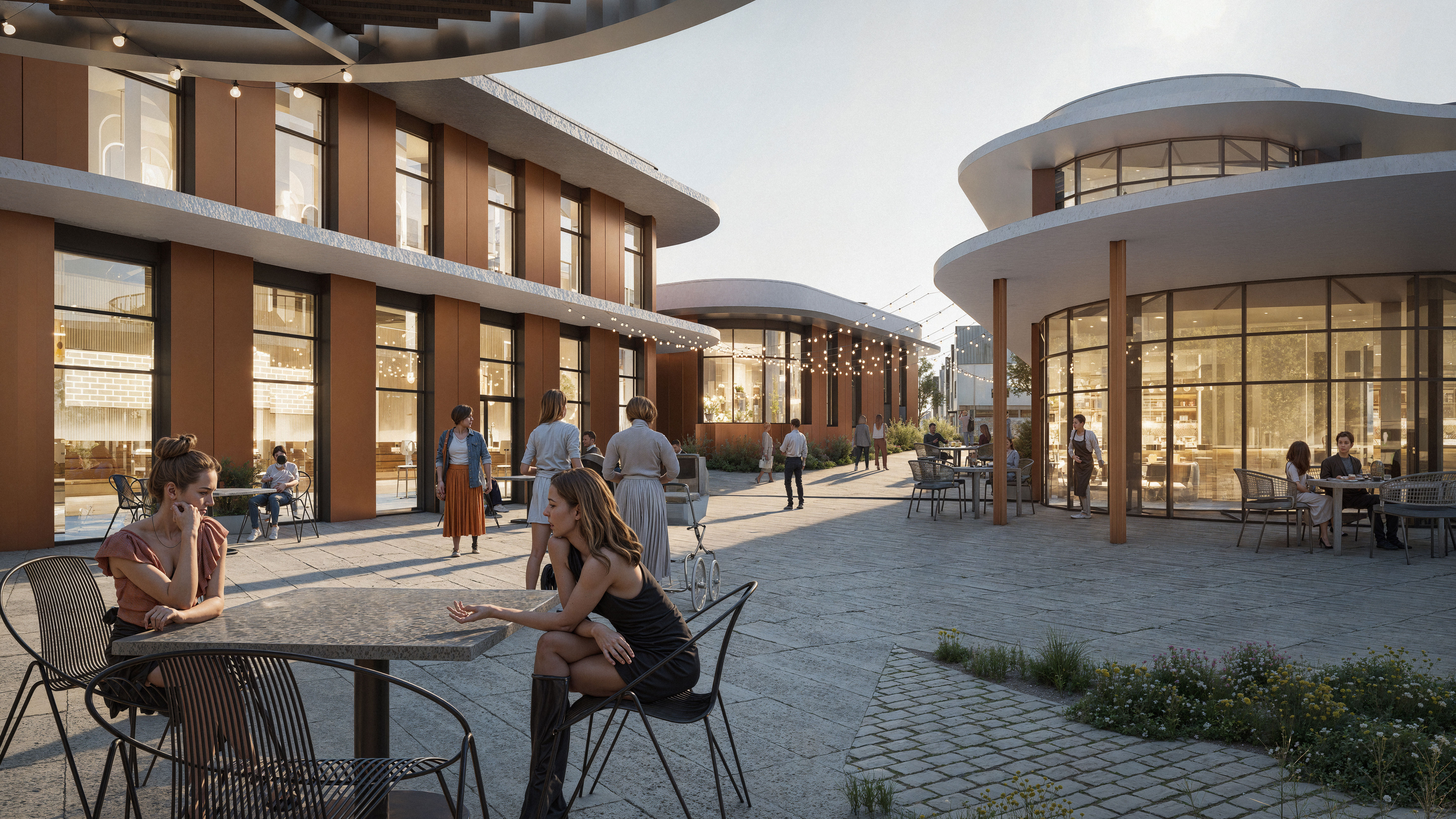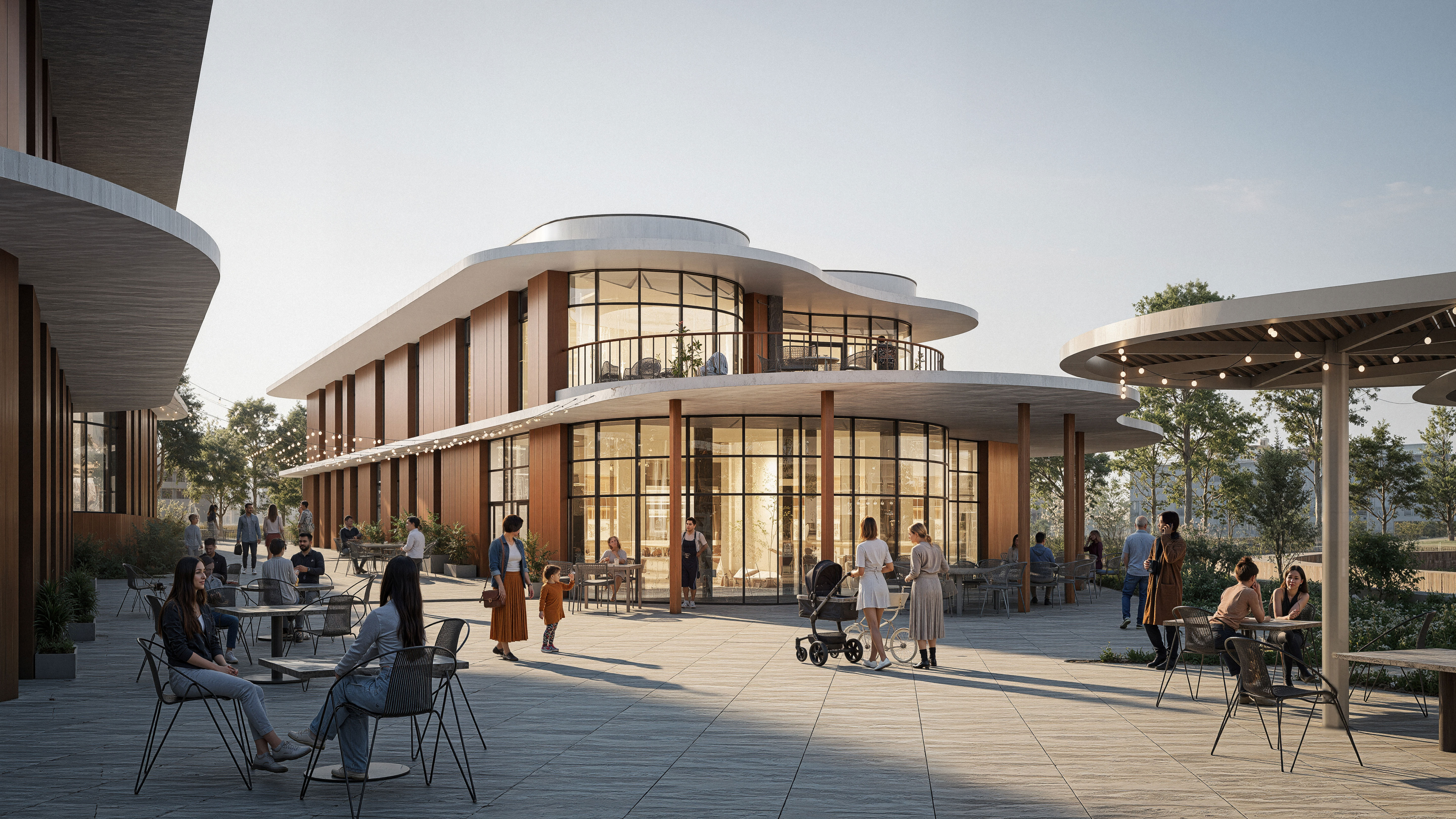 The multifunctional complex consists of three separate buildings located in the heart of the «Lagom» cottage town on the shore of the lake. The complex is designed to meet the basic needs of both the town’s residents and the residents of the village of Sokilnyky, who will relax on the coast. The buildings provide for a variety of commercial functions – from cafes, restaurants and minimarkets to office premises and service spaces. Thanks to this, the complex will become a convenient center of everyday life and leisure, combining comfort, functionality and the atmosphere of relaxation by the water.