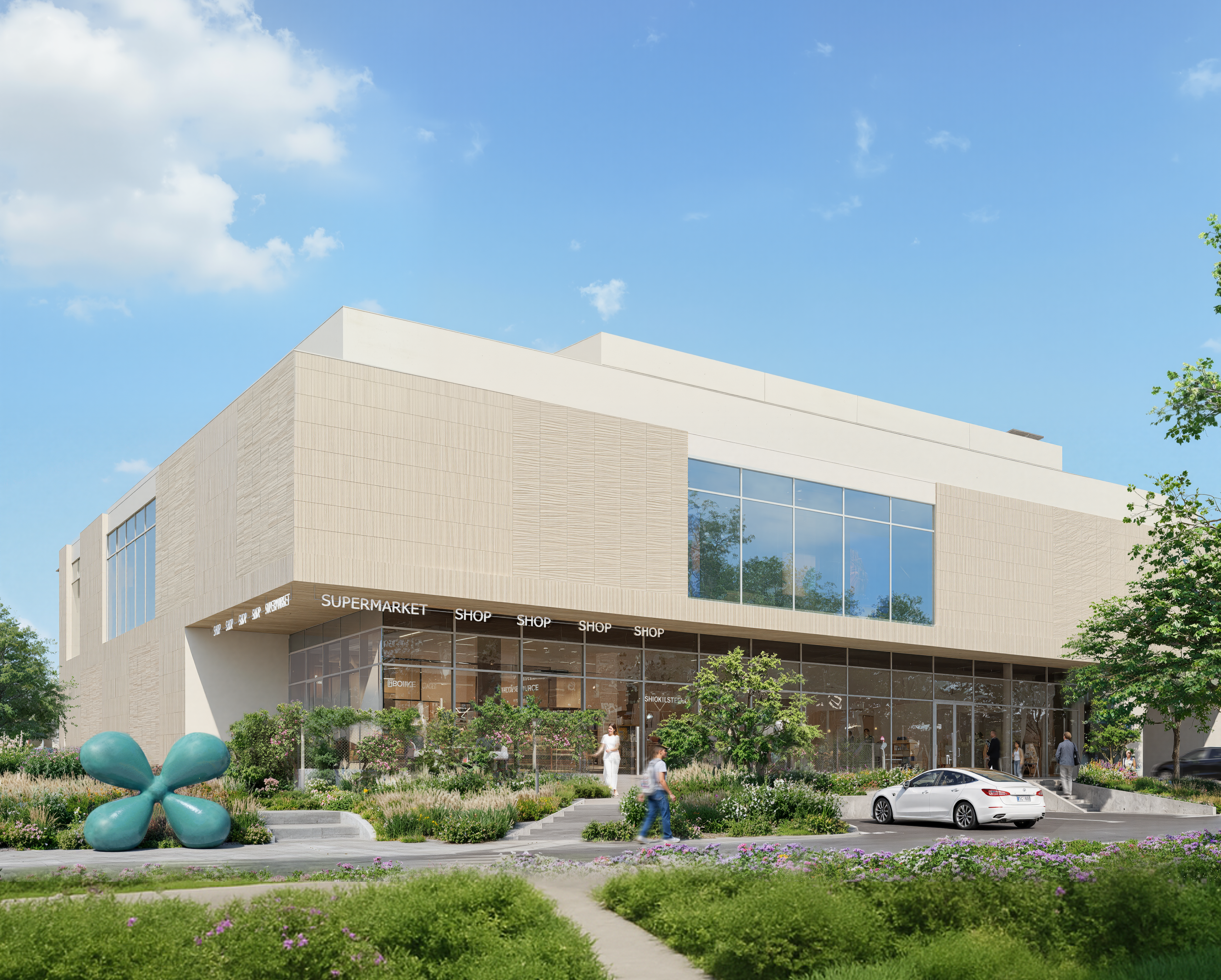 Проєкт максимально враховує існуючий пішохідний потік мешканців, інтегруючи будівлю у їхній щоденний маршрут. Озеленені ділянки перед фасадами виконують як декоративну функцію, так і створюють буфер між комерцією та пішохідними і автомобільними потоками. Також використано велику кількість злаків та квітів, що характерні для цієї місцевості.