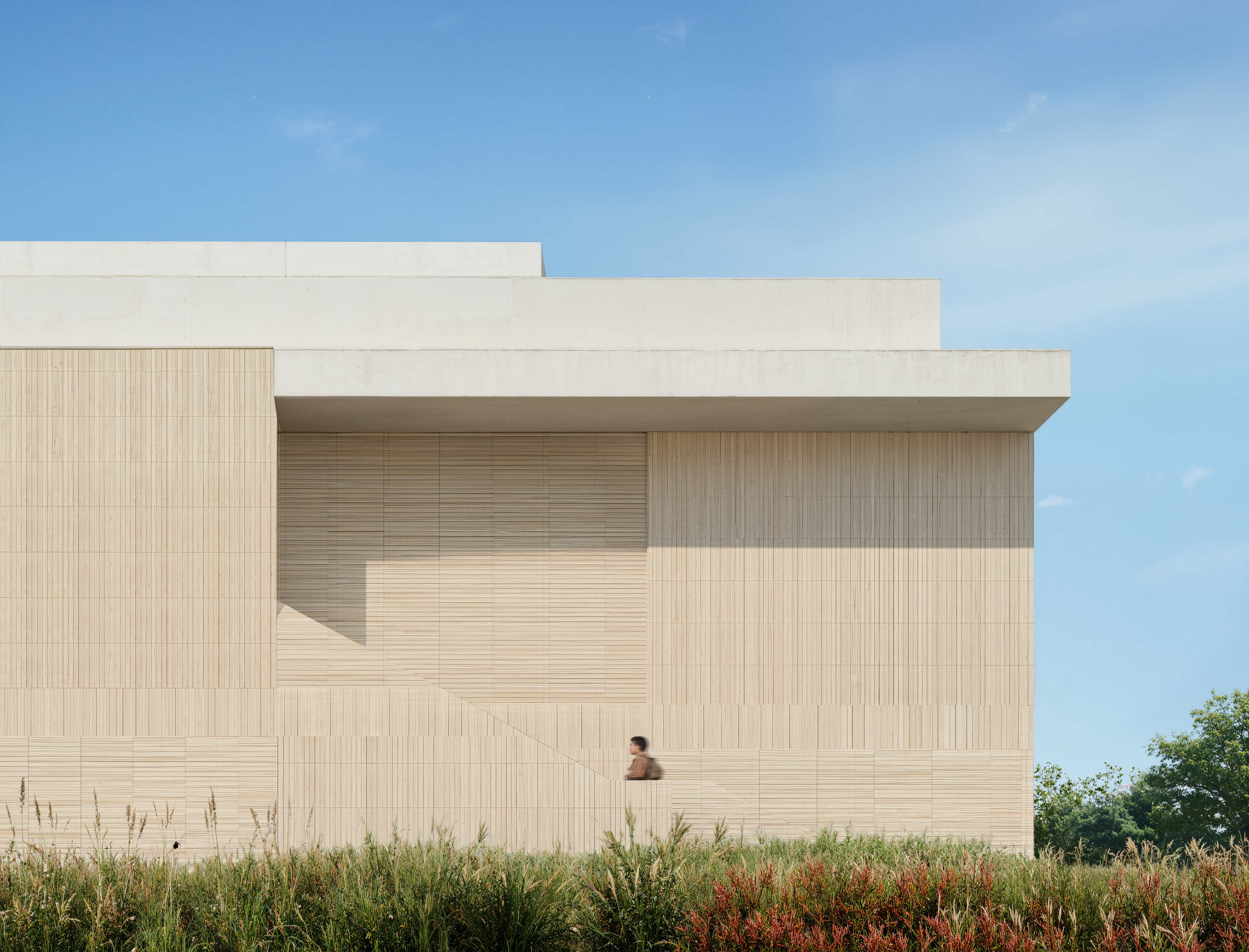 Естетика будівлі базується на принципах лаконічності: прості об’єми, насичена ритмічна фактура фасаду, пастельна палітра кольорів, які не нав’язують міський стиль, а перегукуються із сільським ландшафтом. Це повага до естетики села, що уникає кітчу.