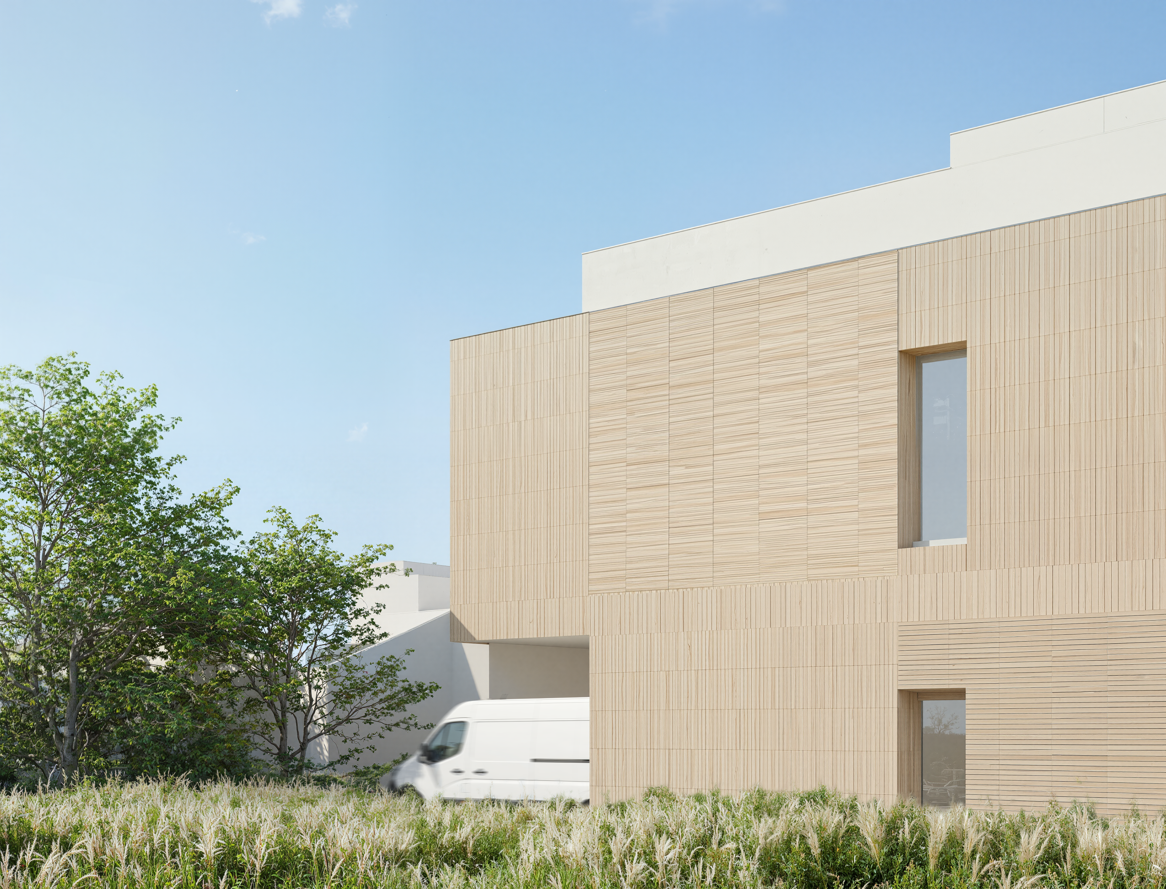 Проєкт поєднує простоту об’ємів, виразність фактур і делікатне ставлення до контексту. Перший поверх займає супермаркет та аптека — базові потреби мешканців задовольняються без необхідності їхати до міста. Верхній рівень відкритий для гнучкої комерції: можливе облаштування кав’ярні з терасою та видом на село.