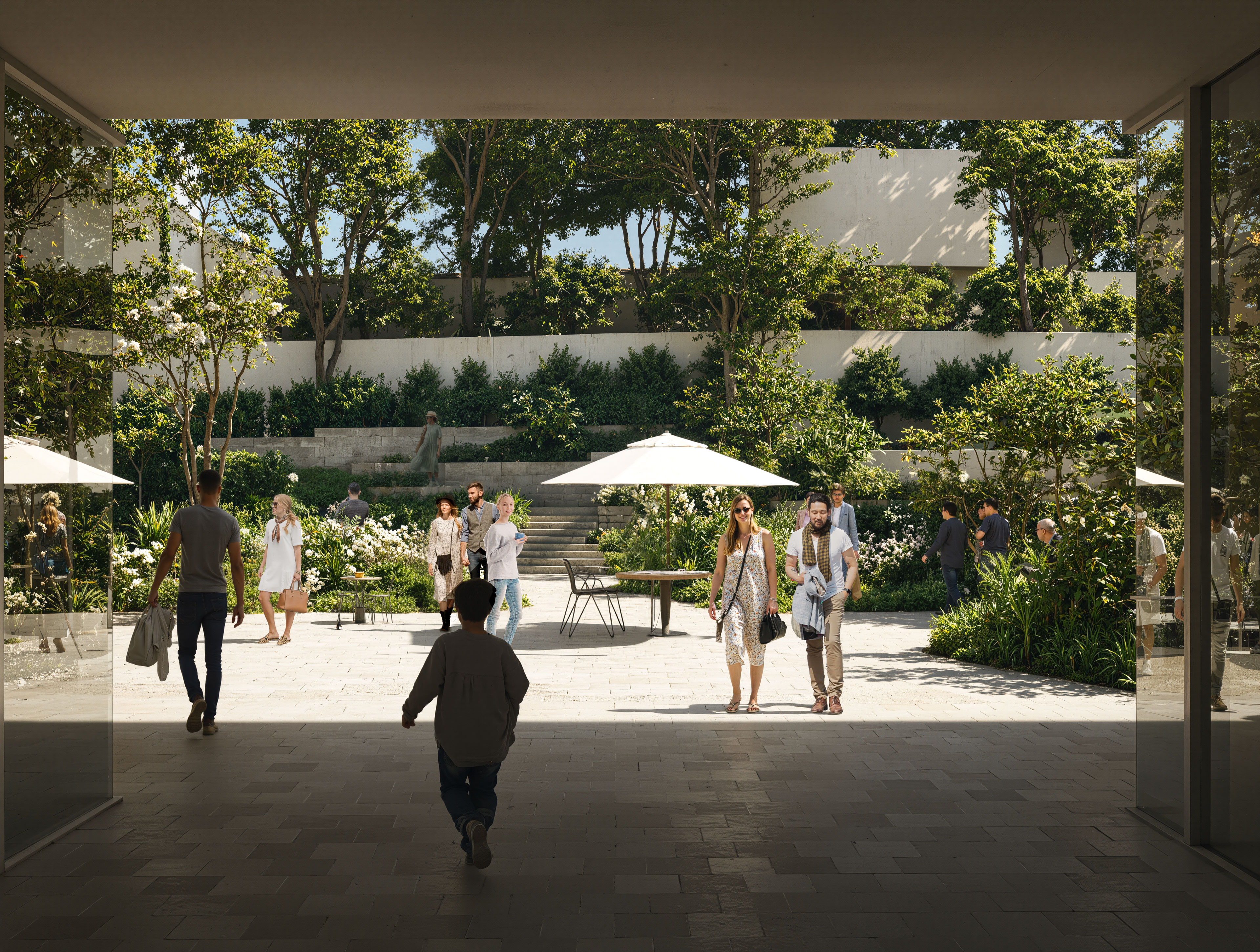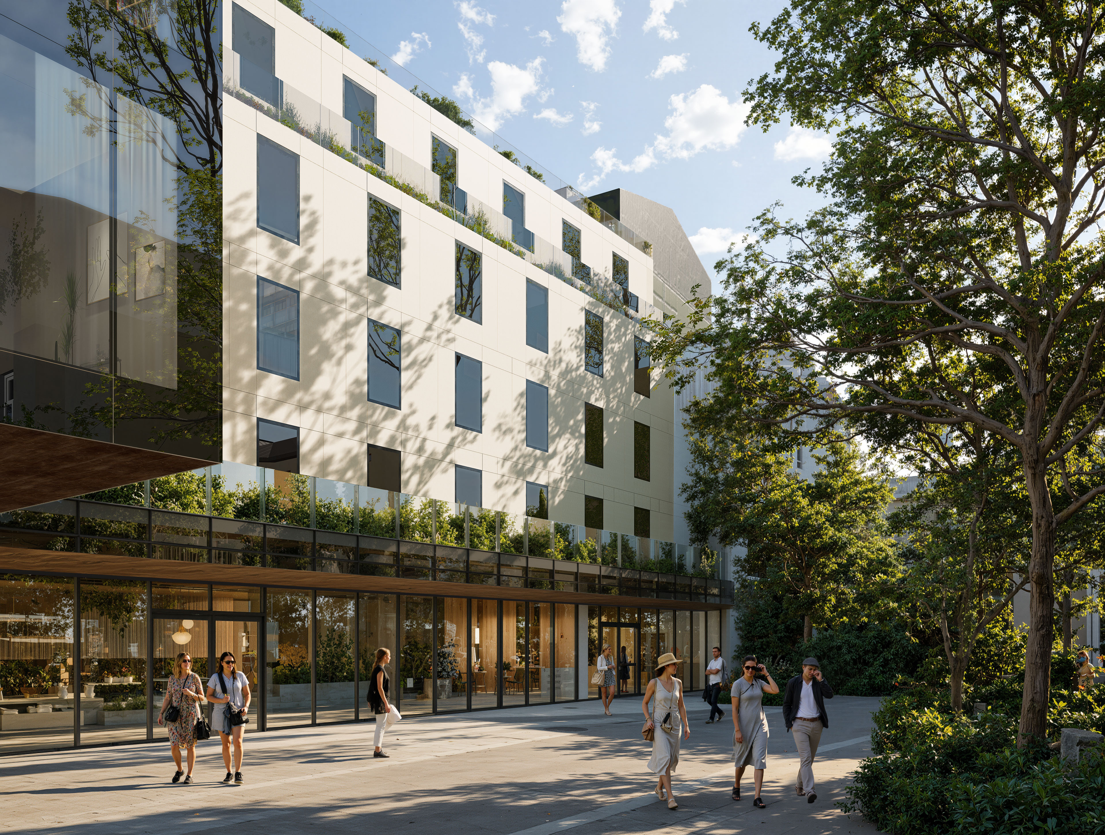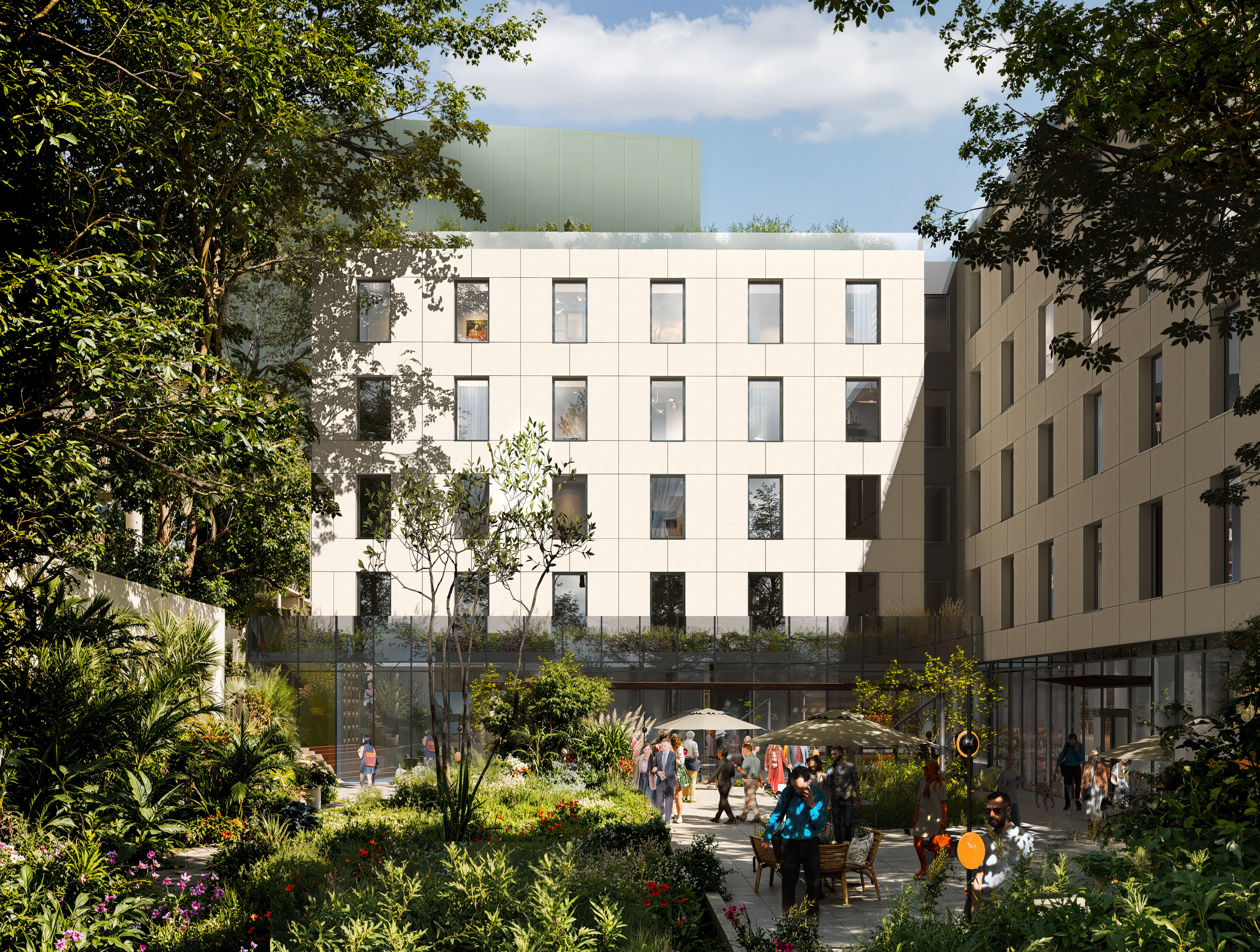 - A semi-private space along the railway embankment — more secluded, intended for hotel guests and residents, and includes a green buffer zone.