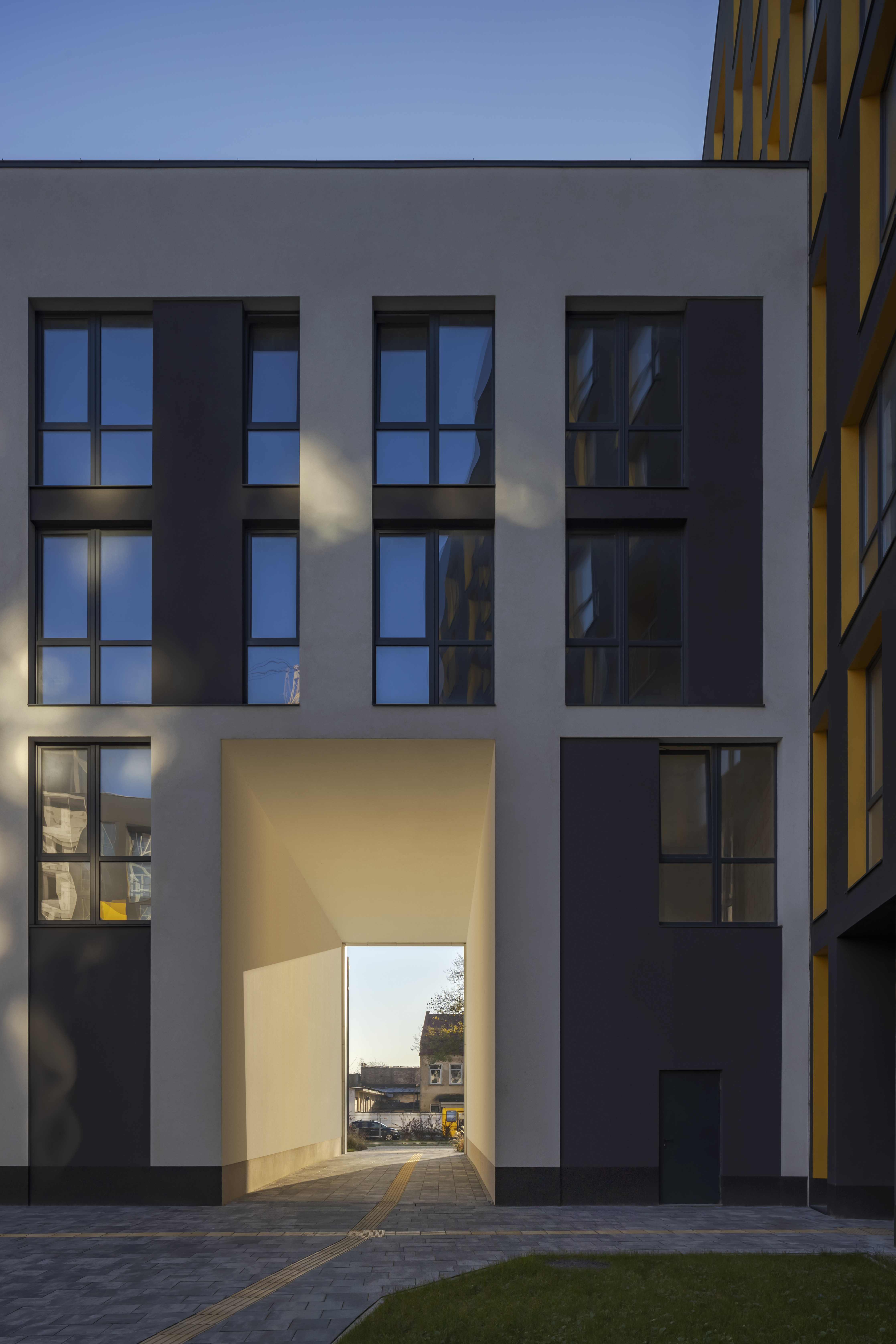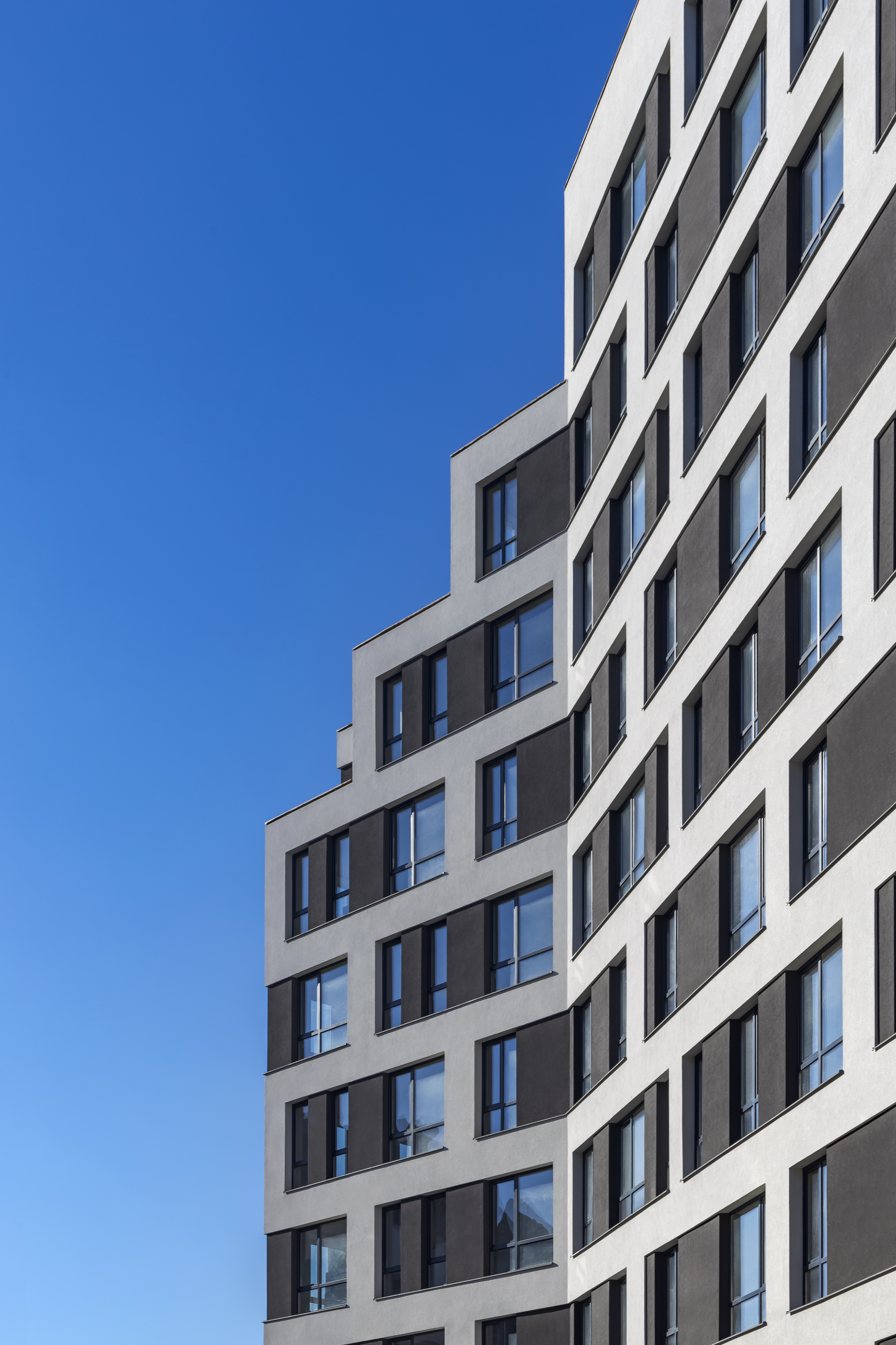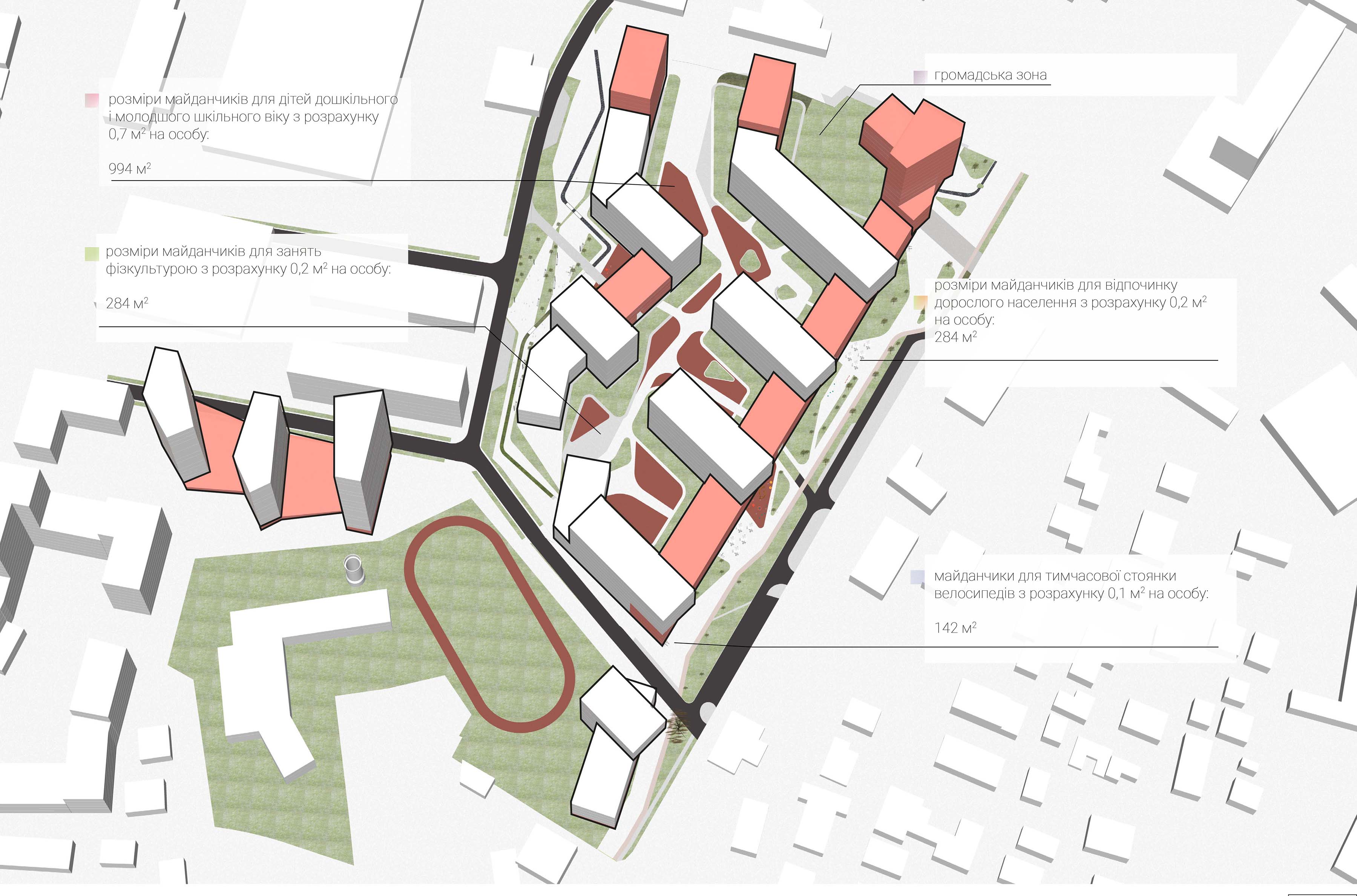 Структура комплексу передбачає суцільну чотириповерхову забудову, що формує фронт цієї вулиці, із точковими дев’ятиповерховими домінантами, які свідомо віднесені вглибину комплексу, відповідаючи генеральному плану міста. Відкритий простір нового фрагменту вулиці буде використовуватись як громадський простір, а не паркінг.