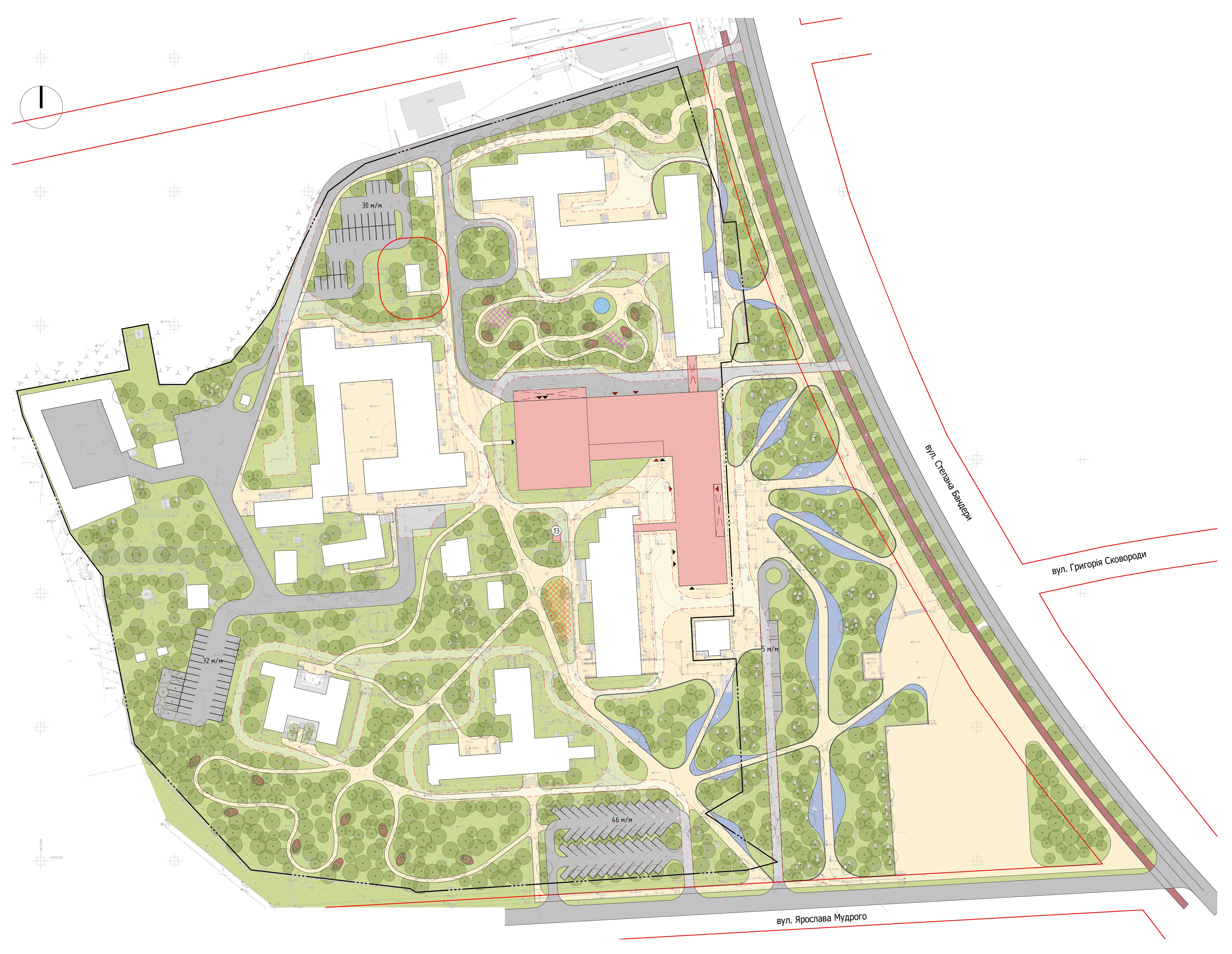 The Sarny Central District Hospital is a cluster facility for the community of approximately 212,000 residents. Currently, the hospital employs over 146 doctors and 327 staff members, with 13 departments functioning and more than 300 beds available. Annually, the facility provides inpatient care to about 16,000 residents and performs over 9,000 surgical interventions, including around 5,000 outpatient procedures. Most surgeries are performed using minimally invasive techniques. The hospital conducts over 2,000 endoscopic, 40,000 radiological, and 60,000 ultrasound examinations. The project envisions expanding the hospital to 375 beds, which will include an emergency medical department, interventional cardiology, anesthesiology and intensive care, stroke, rehabilitation, surgical blocks, neurosurgery, traumatology and orthopedics, general surgery, otolaryngology, ophthalmology, a diagnostic department, a laboratory, and a new emergency department.