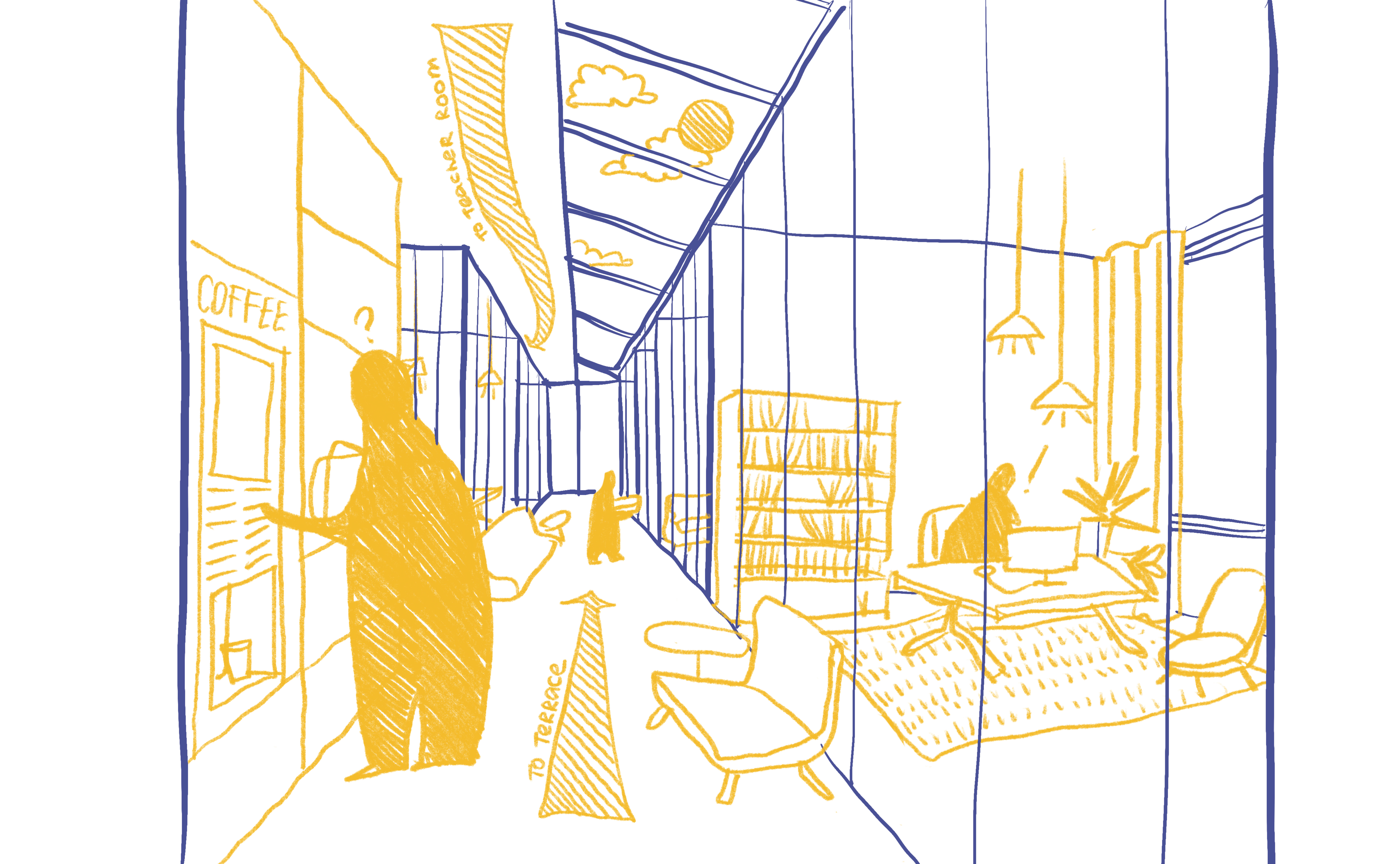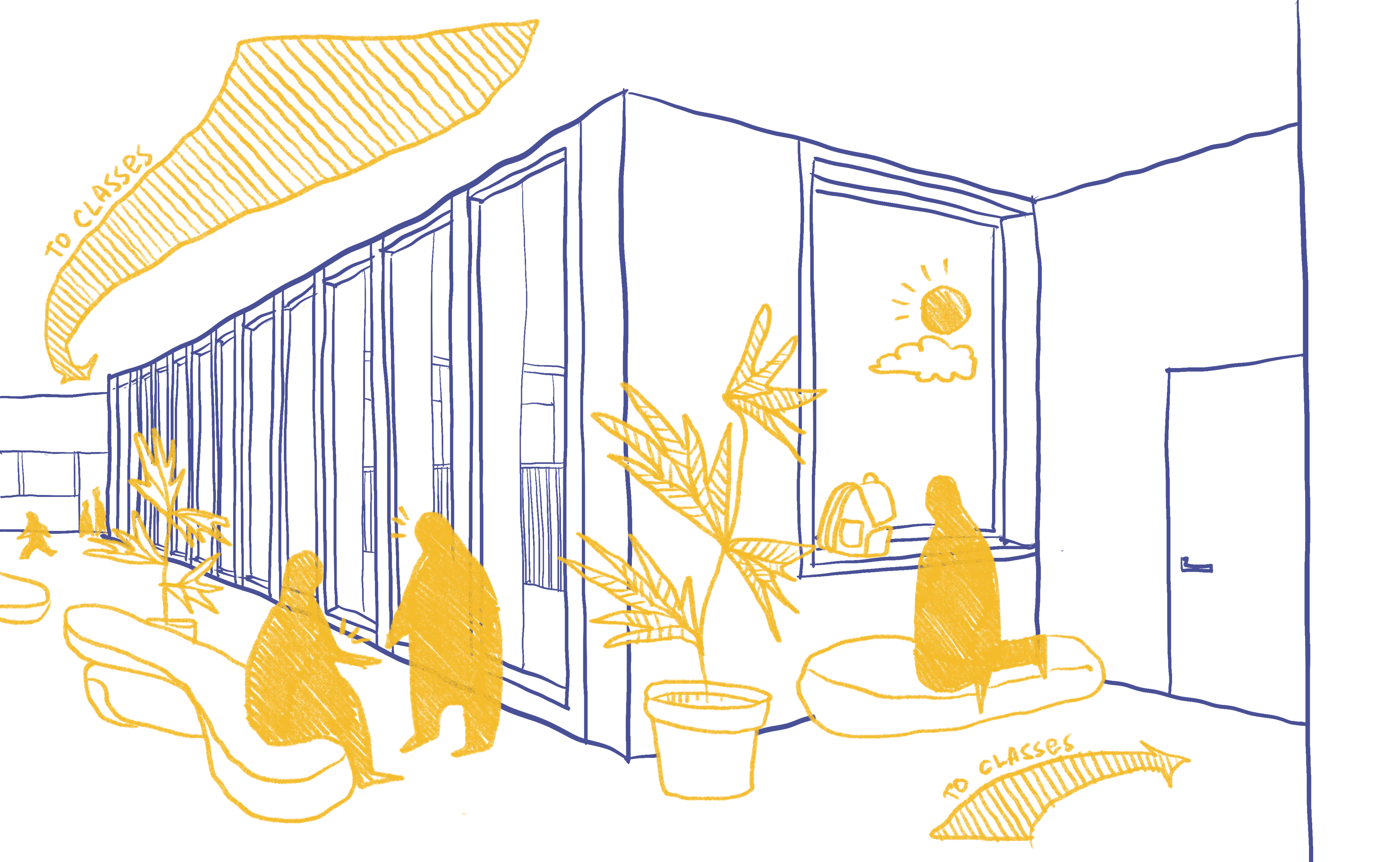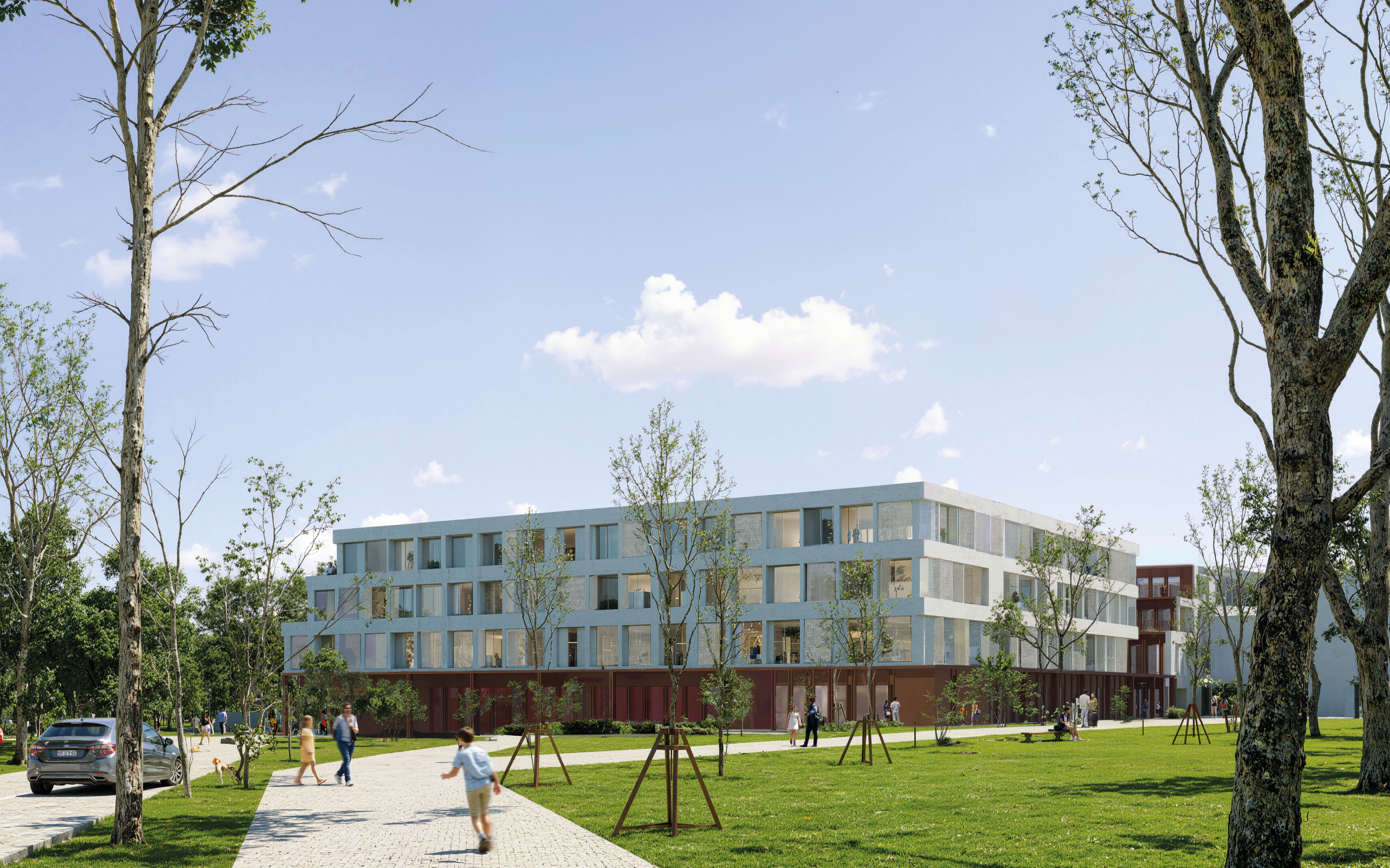 An important aspect of the design is the distinctive functional zoning: the ground floor serves as an open community center — it houses a large sports hall, a multi-purpose auditorium that can be adapted for various needs, a library, extracurricular clubs, and recreational spaces.