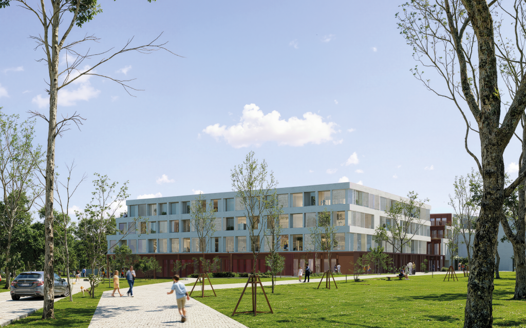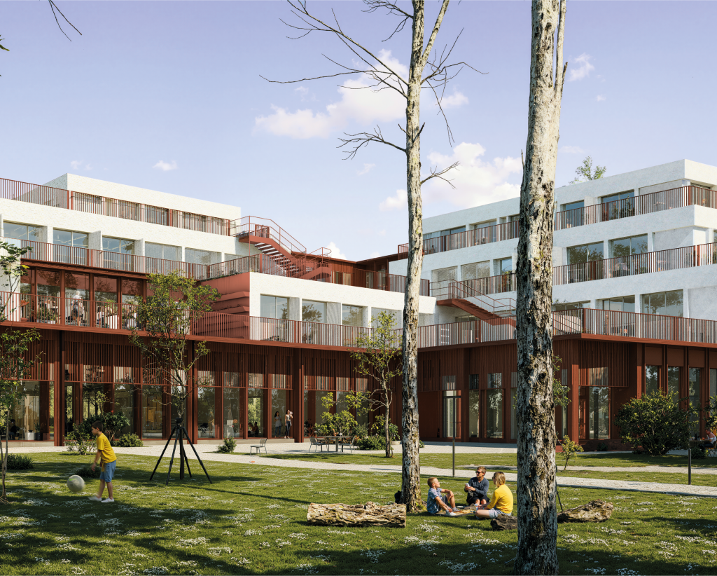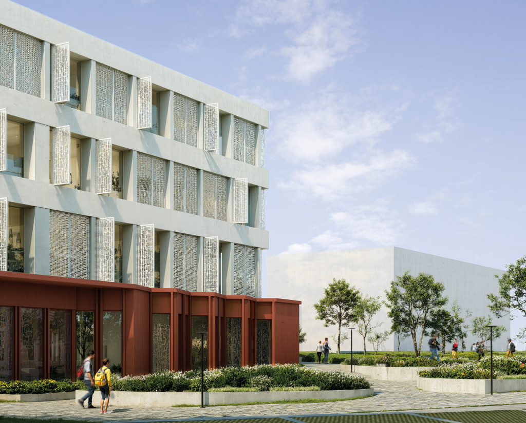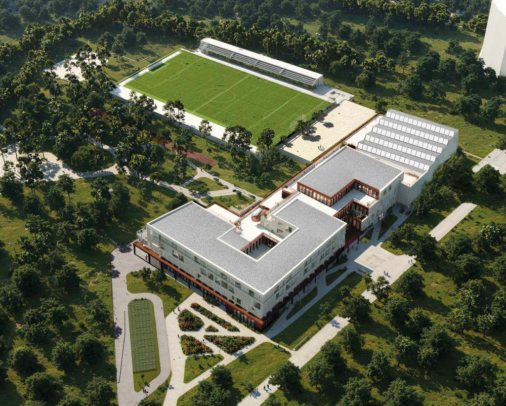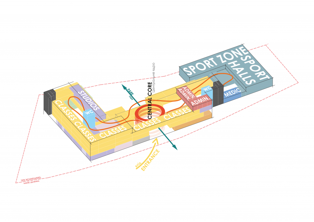 Архітектура не домінує над природою — вона доповнює її, вшановує простір і створює відчуття гармонії. Гімназія постає не як закрита структура, а як багаторівнева платформа для навчання, розвитку, спілкування і духовного зростання — як частина громади, що зростає разом із нею.