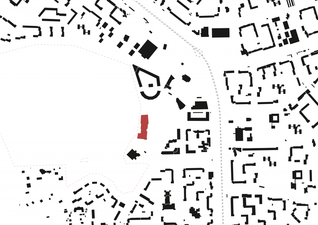 Пластика фасадів підсилена характерними акцентами – червоні вставки ніби прорізають об’єм, немов природні розломи в кам’яній породі, які не руйнують цілісність, а підкреслюють глибину та багатошаровість структури. Вони слугують не лише естетичним акцентом, але й виконують роль напрямних для руху, орієнтації у просторі.
