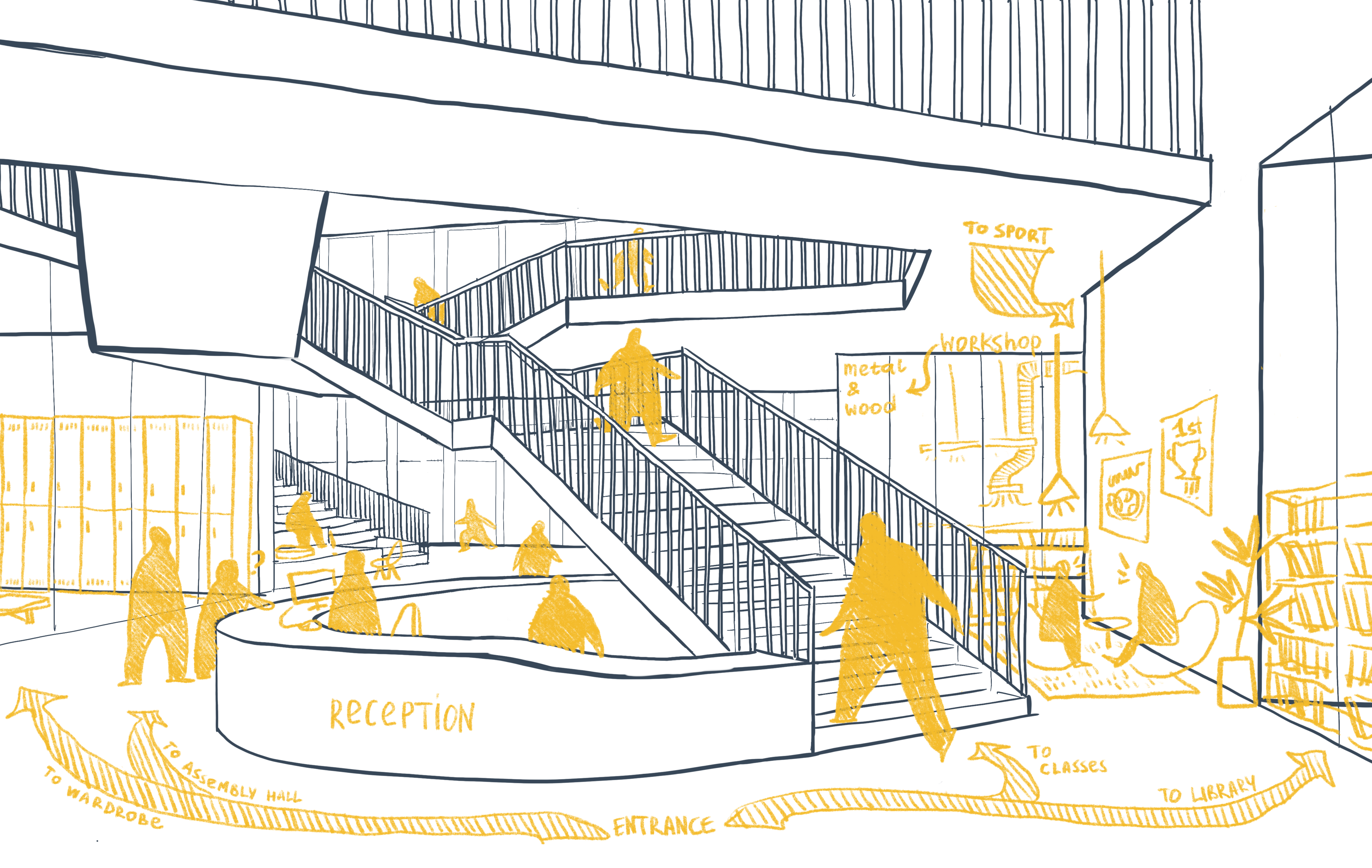 Проєкт гімназії ім. Шептицьких виник як відповідь на запит не лише на сучасний навчальний простір, але й як інструмент соціальної взаємодії — місце, де школа перестає бути закритою інституцією і стає активним елементом сихівської громади у Львові.