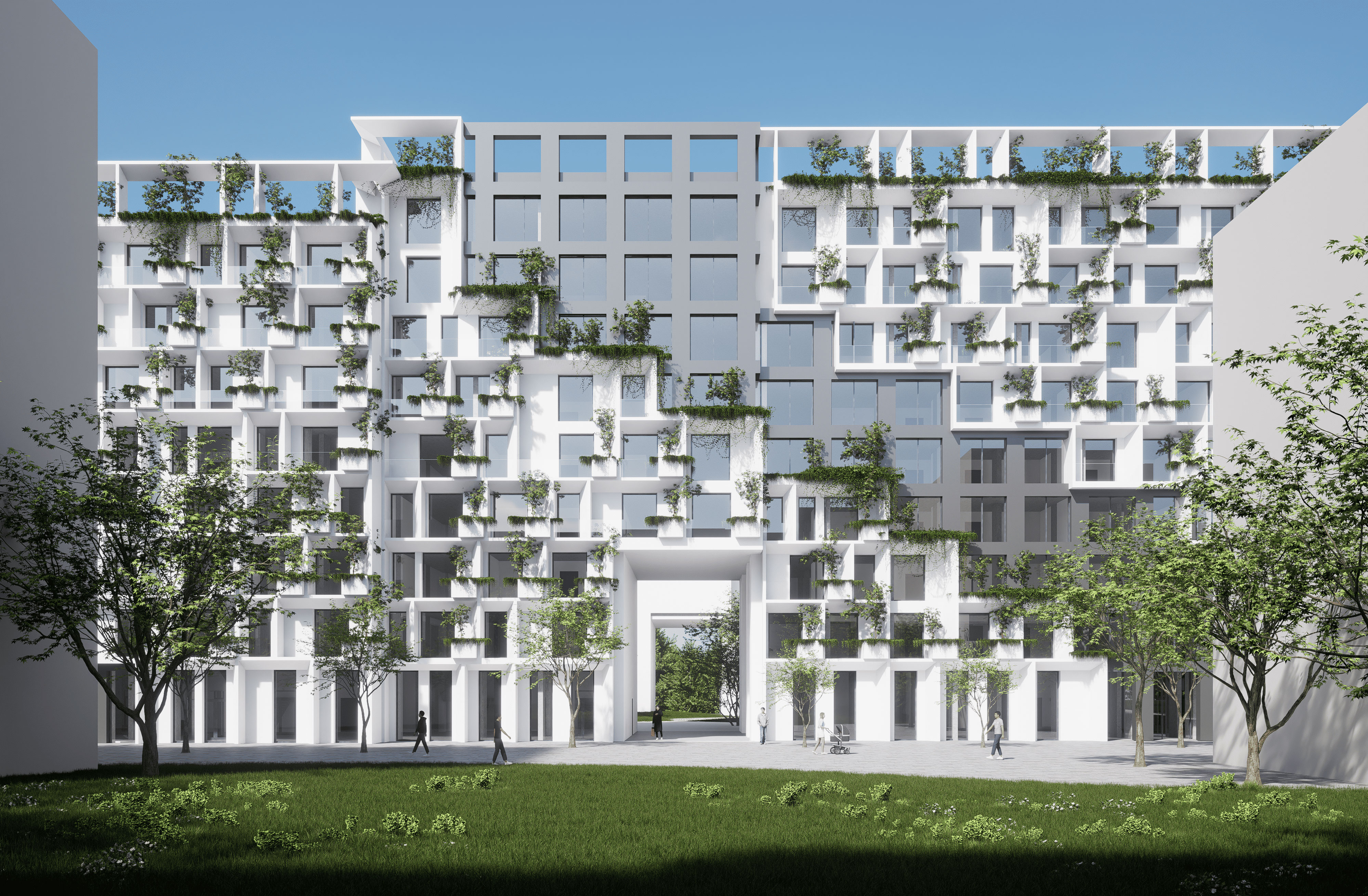 Balconies are provided in almost every room, adding space, light, and opportunities for outdoor relaxation. This facade literally changes with the seasons: built-in planters for greenery allow the creation of vertical gardens that blend with the surrounding nature.