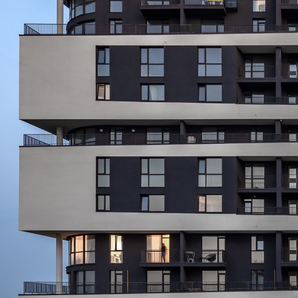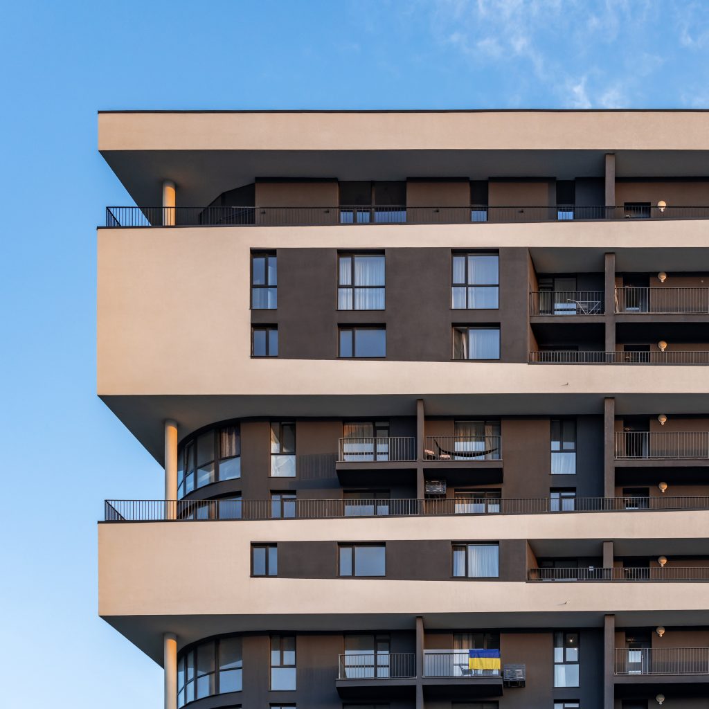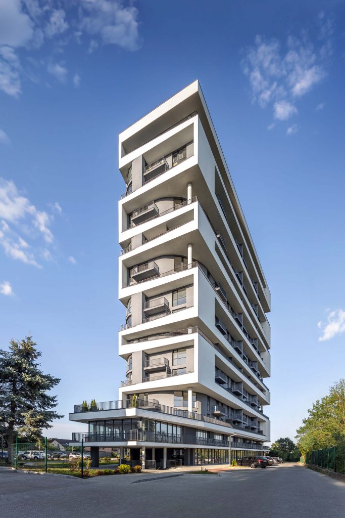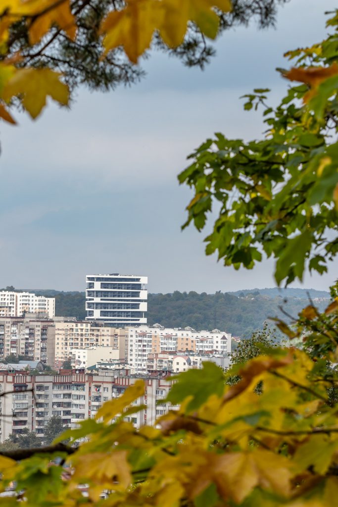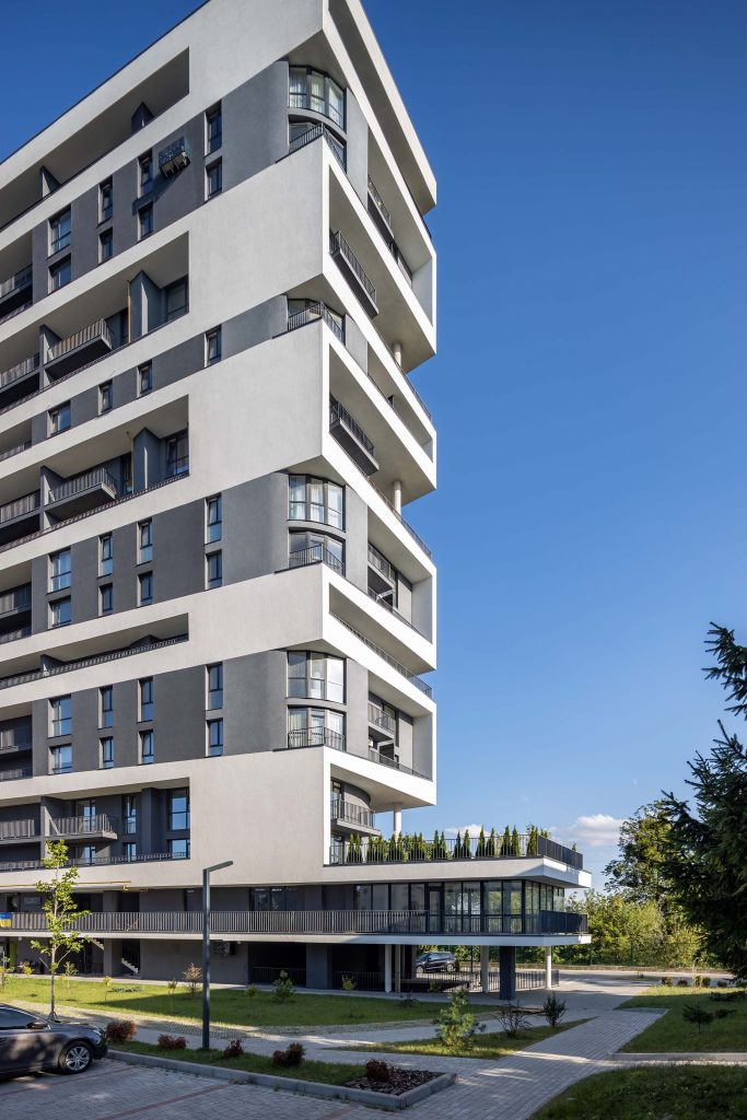 Ділянка проектування розташована в північній частині Львова і доволі важлива з точки зору містобудівної тканини, адже споруда завершує своїм силуетом проспект Чорновола. Тому архітектори вирішили зробити фасади максимально лаконічними та водночас цікавими прийомами, завдяки яким будівля буде сприйматися цілісно як з віддалених ракурсів, так і з ближніх. Горизонтальний поділ фасаду у майбутньому не буде сперечатися із силуетом храму, що заплановано звести поруч. Оздоблення фасадів запроектовано у двох матеріалах: основний кістяк – у темному кольорі, а серпантин, що утворює пластика виступаючих конструкцій – світлого кольору.