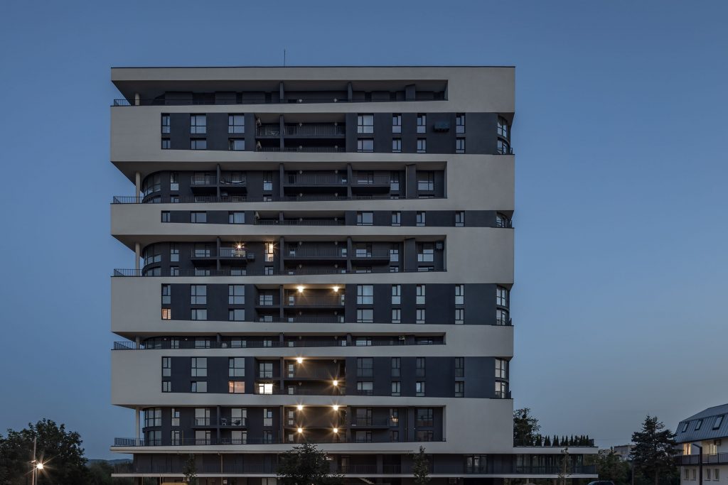 Особливості розташування ділянки зумовили орієнтування довгих фасадів на південь та північ, що ускладнило проектування, але дало можливість передбачити гарний вид на місто з більшої кількості квартир.